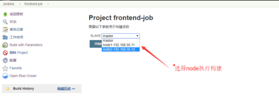插件安装成功后,我们配置frontend-job,勾选参数化构建添加Node,