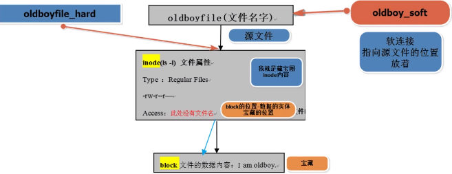1) 如何创建: a)默认不带参数情况下,ln命令创建的是硬链接,带-s参数的ln命令创建的是软链接。 2) 含义: a)硬链接文件与源文件的inode节点号相同,而软链接文件相当于windows下面的快捷方式(inode节点号与源文件不同) 3) 特点: a)不能对目录创建硬链接,但可以创建软链接,对目录的软链接会经常被用到 b)软链接可以跨文件系统,硬链接不可以跨文件系统。 4) 怎么没的(源文件,软链接,硬链接与删除) a)除软链接文件,对源文件及硬链接文件无任何影响; b)除文件的硬链接文件,对源文件及软链接文件无任何影响; c)除链接文件的源文件,对硬链接文件无影响,会导致其软链接失效(红底白字闪烁状); d)时删除源文件及其硬链接文件,整个文件才会被"真正"的删除。