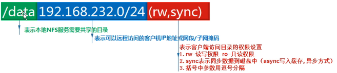 # vim /etc/exports /data 172.16.1.0/24(rw,sync)