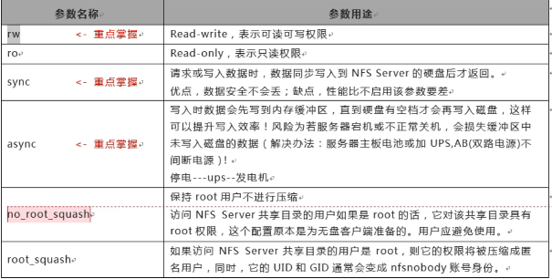 /etc/exports nfs服务主配置文件 /usr/sbin/showmount 查看nfs服务共享目录信息 /usr/sbin/rpcinfo 查看rpc服务中是否有房源注册信息 /var/lib/nfs/etab 用于查看nfs服务默认配置信息 /proc/mounts nfs客户端mount挂载参数(可以查看默认挂载参数信息)