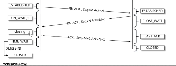 FIN_WAIT_1接受到了本应FIN_WAIT_2接受的消息;便不会有FIN_wait_2状态,直接变为closing状态,很短一段时间后,会变为TIME_WAIT状态