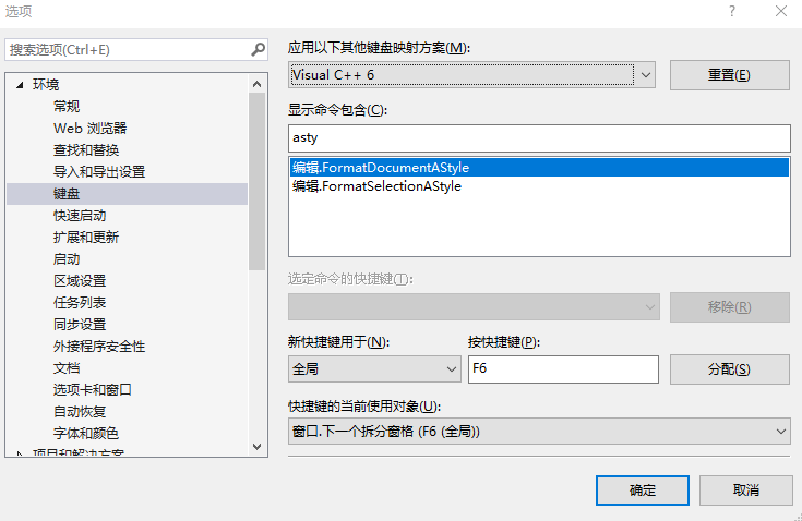 工具->选项 -> 环境-> 键盘