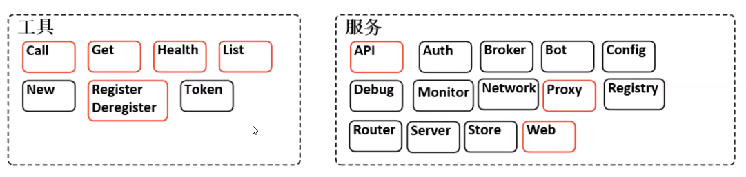 // The registry provides an interface for service discovery // and an abstraction over varying implementations // {consul, etcd, zookeeper, ...} type Registry interface { Init(...Option) error Options() Options Register(*Service, ...RegisterOption) error Deregister(*Service) error GetService(string) ([]*Service, error) ListServices() ([]*Service, error) Watch(...WatchOption) (Watcher, error) String() string } 通用型注册中心 etcd\consul\zk\eureka 网络广播 mdns\gossip 消息中间件 nats