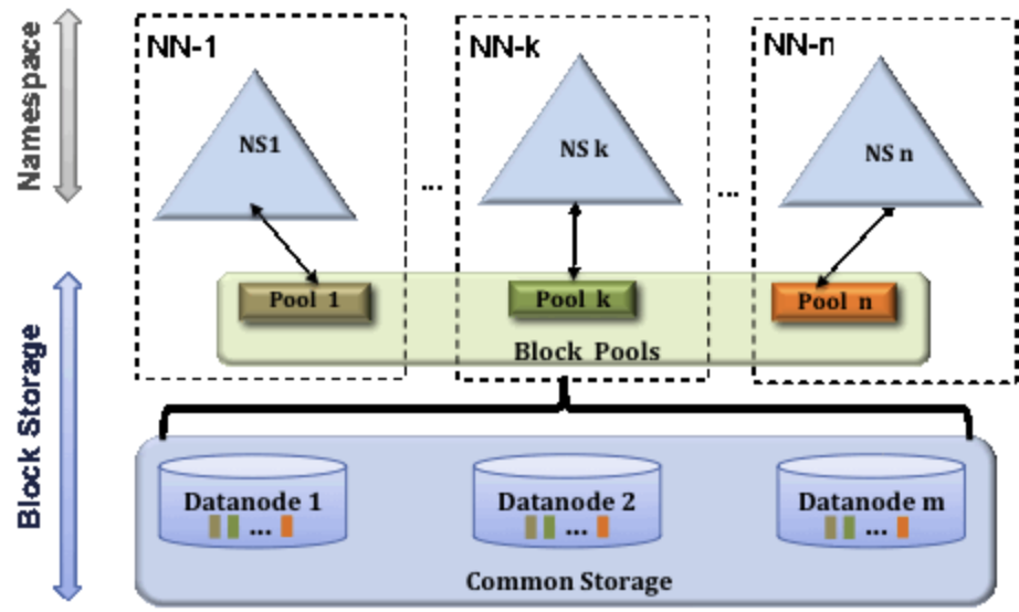 在第一篇的基础上,要解决的问题 1、NN单点故障 2、内存压力过大 解决方案: 1、多个NN将数据分片,NN管理不同路径分支的数据