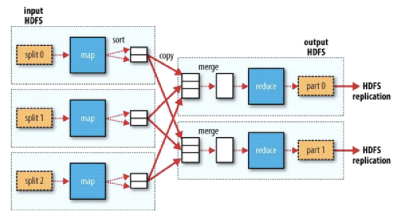 - 最终map输出结束,过程中buffer溢写出多个小文件