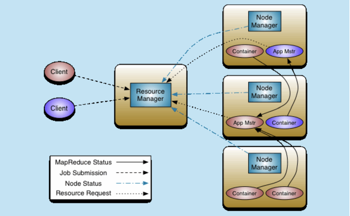 * 单点故障 ---> jontracker变成了一个任务一个 * 压力过大 ---> jobtracker变成了一个任务一个。 * 集成了【资源管理、任务调度】两者耦合 ----------> 抽离出来
