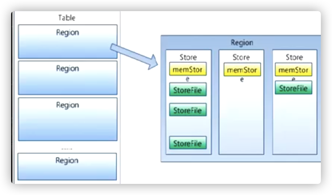 HRegion由一个或多个Store组成,每个store保存一个columns family
