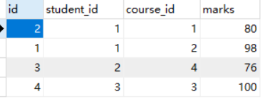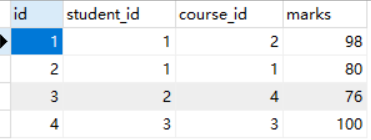 在项目开发中往往会遇到两个实体对象之间存在多对多关系的情况,此时我们会维护两个实体对象表,一个关系表,用来存放两者之间的关系。比较典型的案例是学生表、课程表、学生课程关系表。在这种关系表中,我们可以确定的是,学生和课程关系虽然是多对多,但一个确定的学生id和一个确定的课程id在关系表中只能存在一个。如下图所示:,业务逻辑就是一个学生只能有当前课程的一个分数。