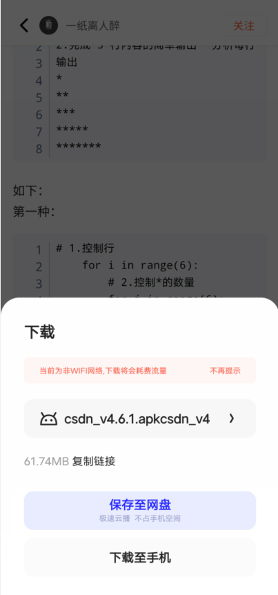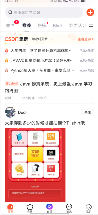 会提示叫你下载csdn,虽然你手机里已经有这个app了