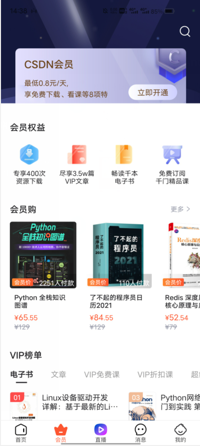 c.第二个就是会员,他这个就太刻意了,明显暗示,用户体验扣分会员功能就不多说了,就是消费相关。不过做的还是比较美观的。