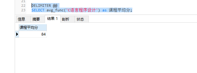 SELECT avg_func('C语言程序设计') as 课程平均分;