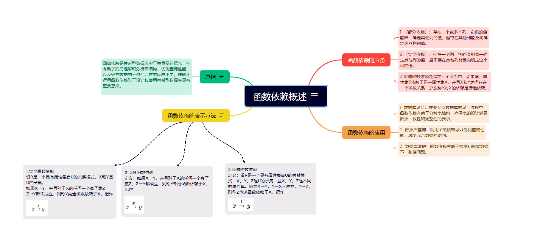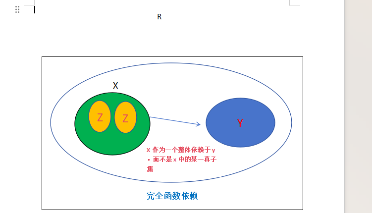 如果X→Y,并且对于X的任何一个真子集Z,Z→Y都不成立,则称Y完全函数依赖于X,记作;