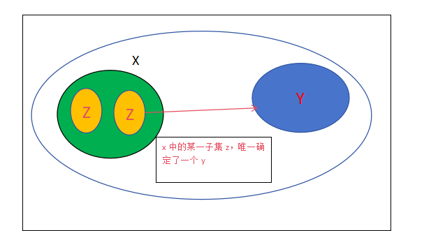 举例: 学号————Sid和课号————Cid组合在一起可以决定某个同学的某科成绩————Cscore,(Sid,Cid)→ Cscore,在此处起决定因素的是(Sid,Cid),对应上图中的X,Sid,Cid分别对应Z,Cscore对应Y.