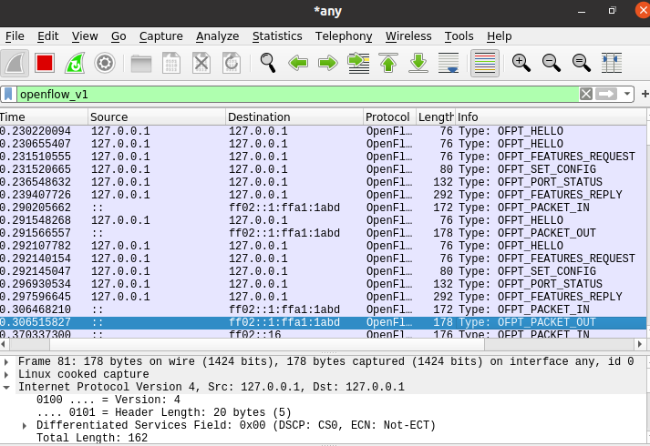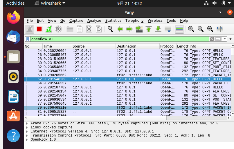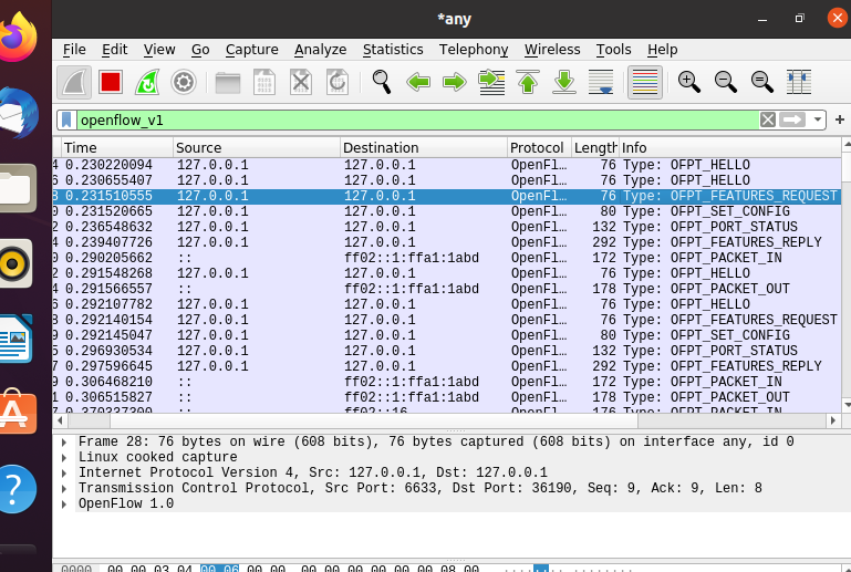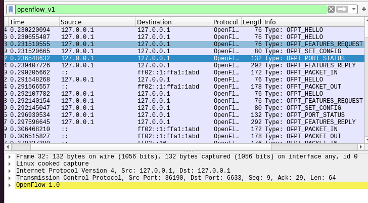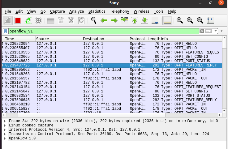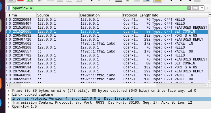 3.回答问题:交换机与控制器建立通信时是使用TCP协议还是UDP协议?