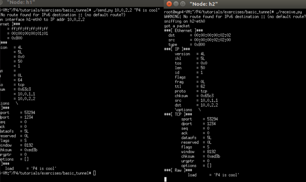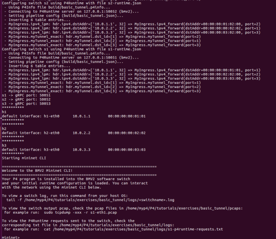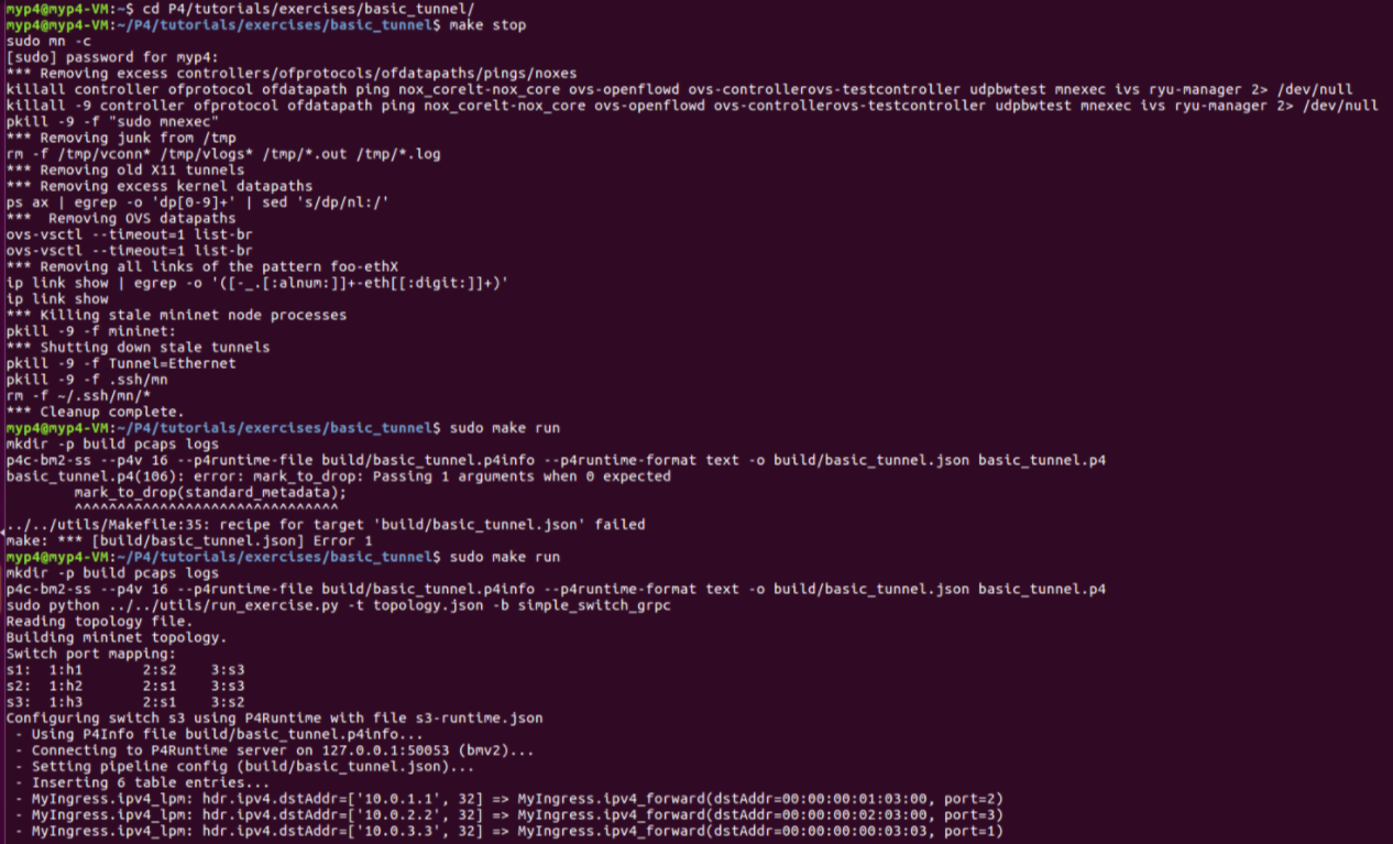 熟悉使用P4实现交换机IPv4的基本转发原理,编写P4程序,在下面的拓扑中实现IPV4 隧道转发。