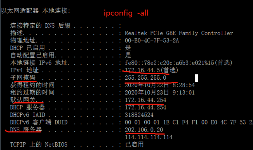 网络分配方式默认DHCP,改为static后, IP地址固定了! YPE="Ether net" # 网络类型,以太网 BOOTPROTO="static" # 改为静态IP IPADDR="172.16.44.xxx" # IP地址 NETMASK="255.255.255.0" # 子网掩码 GATEWAY="172.16.44.254" # 网关 DNS1="202.106.0.20" # 首选DNS ONBOOT="yes" # 是否可以上网(默认为ON)