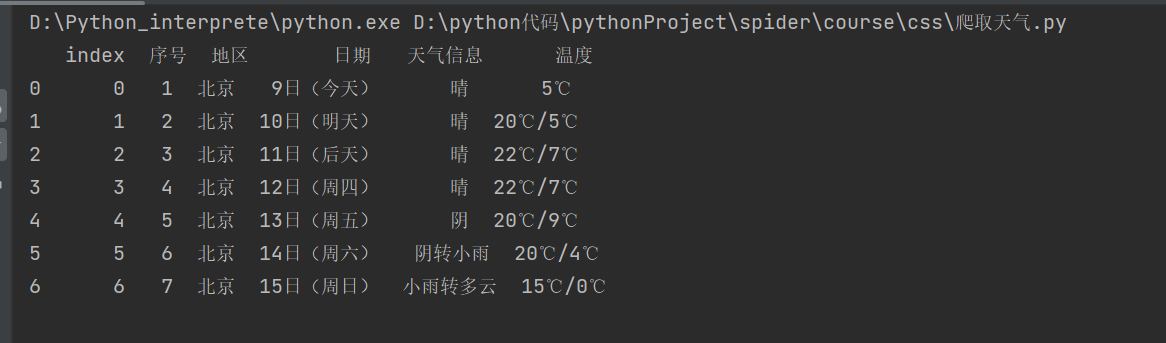 要求:在中国气象网给定城市集的7日天气预报,并保存在数据库。