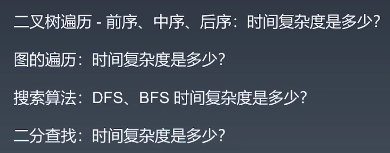 第一、第二、第三个:时间复杂度都是O(n),n为节点总数。