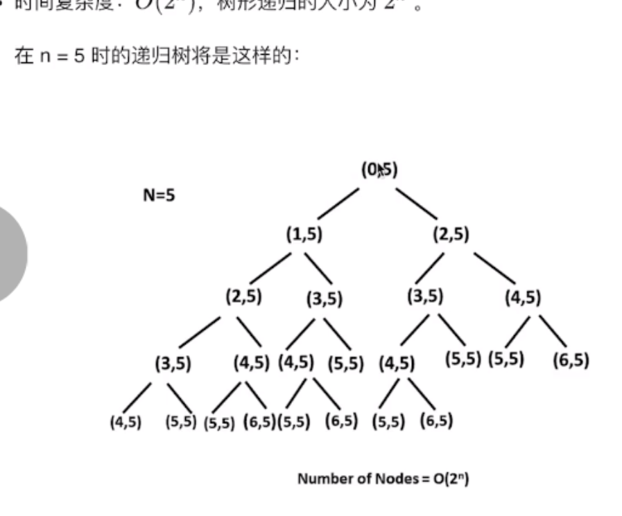 观察:每一层的节点数上一层的两倍,所以O(2^n)。