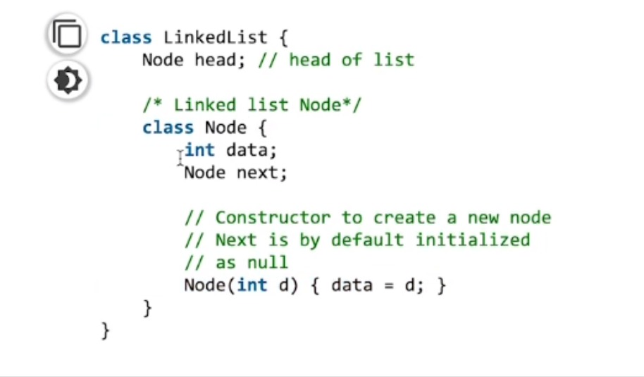 每个元素一般用class来定义,可以叫做node。里面包含两个成员变量:value,next 指针/引用