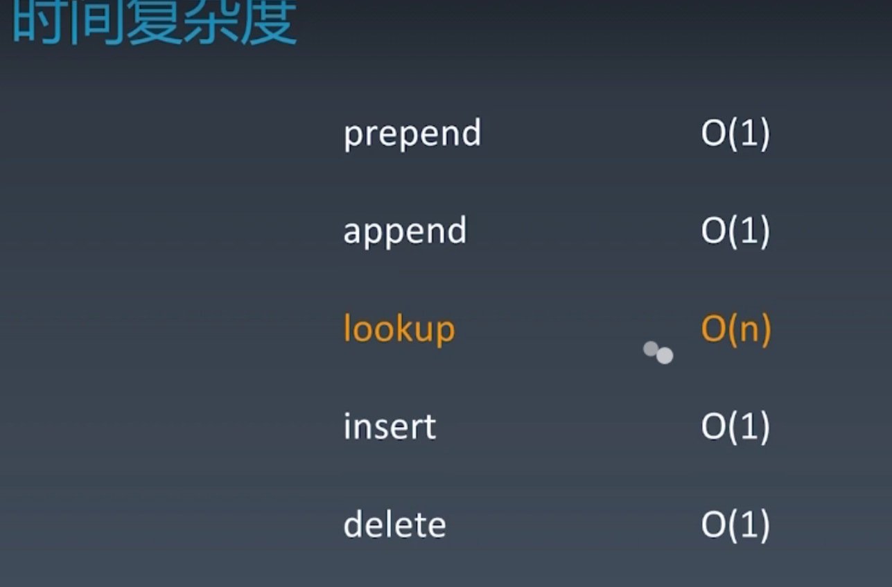 链表的插入、删除时间复杂度O(1),没有复制、移动的操作,但是随机访问操作O(n)