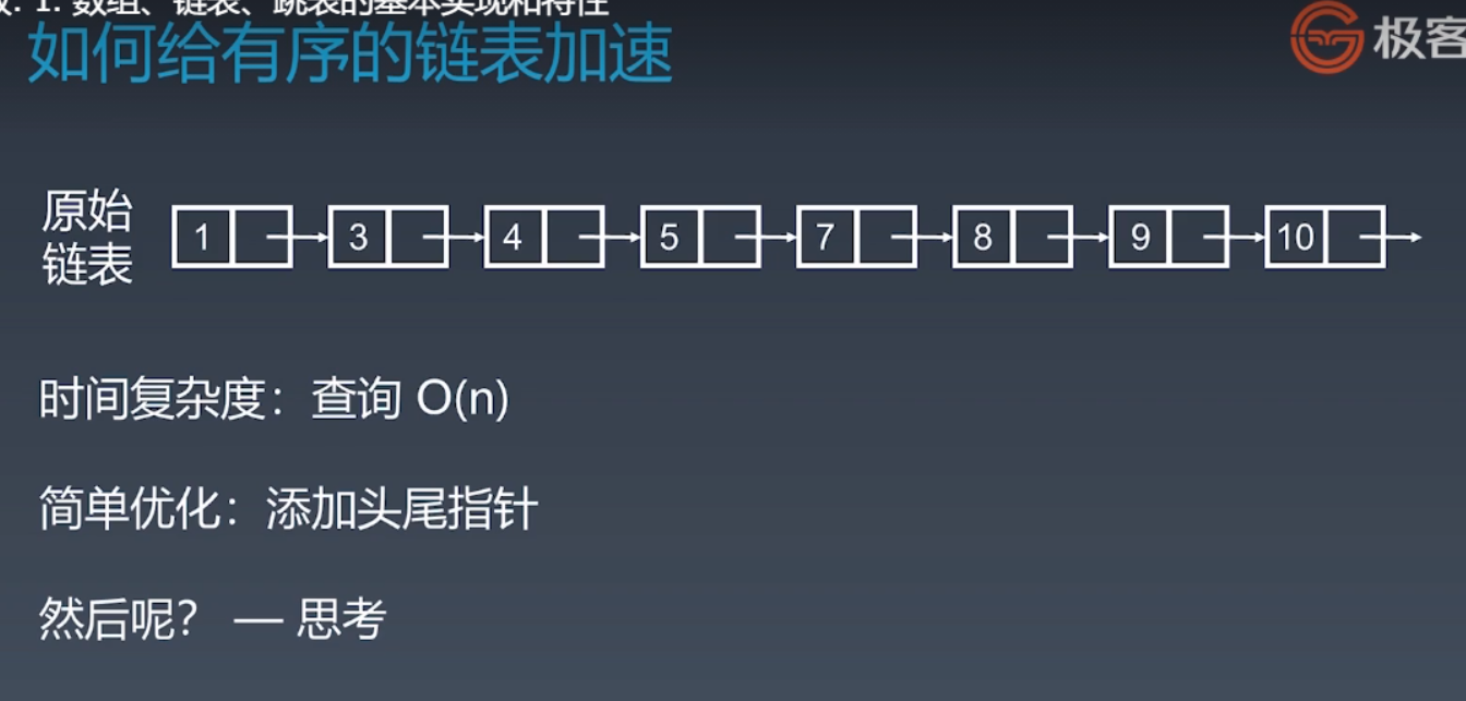 问题背景:链表有序时,如何加速(查找操作)? PS:不能用数组的二分查找