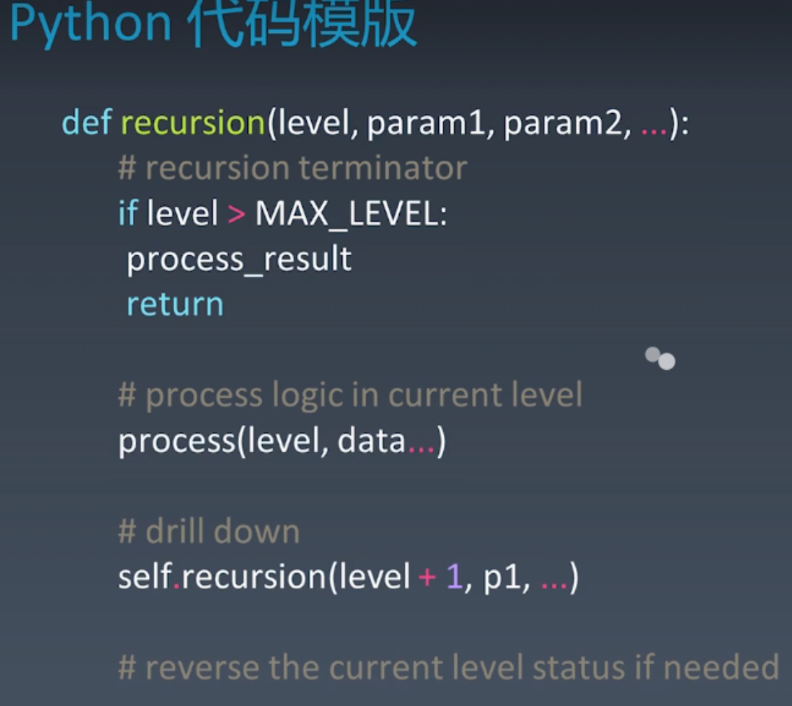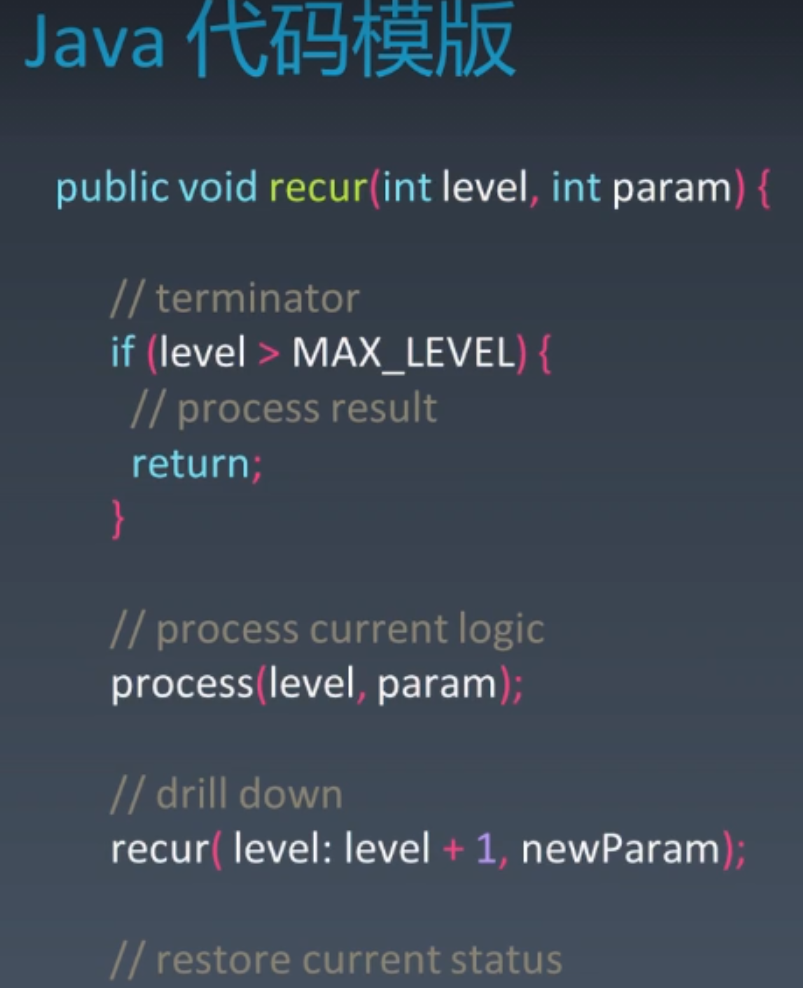 - 1.终止条件 Terminator,一定先写好!防止无限递归、死循环