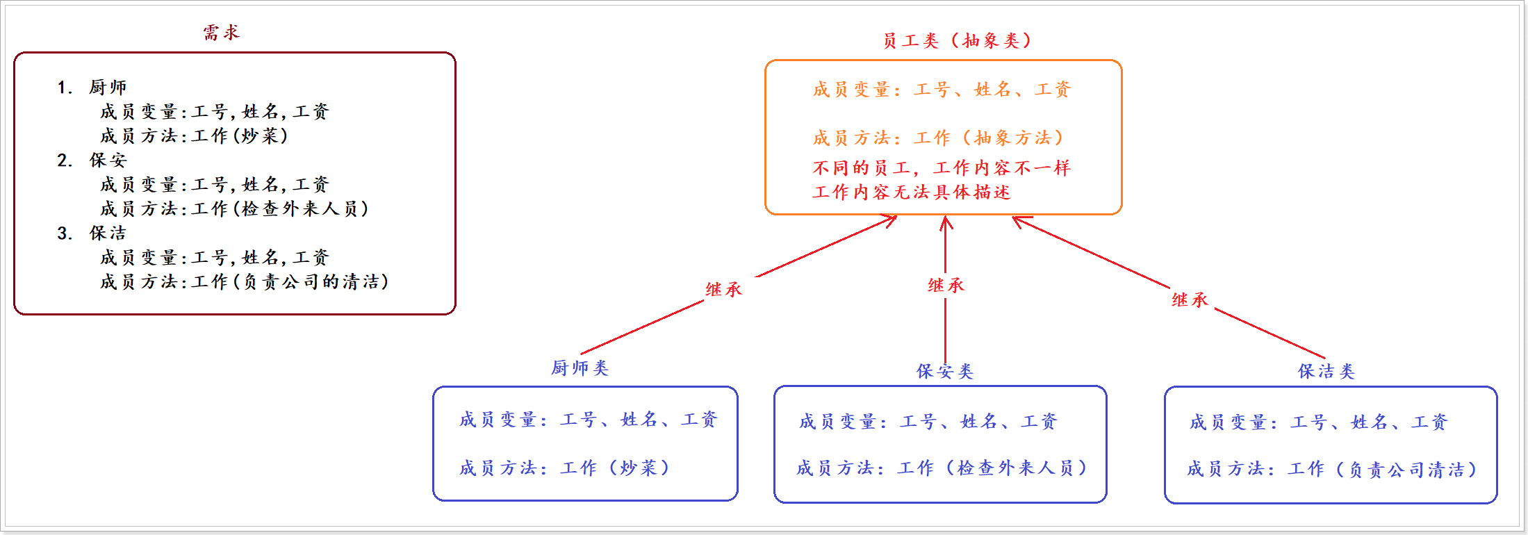 - 抽象类中不一定包含抽象方法,但是有抽象方法的类必定是抽象类。