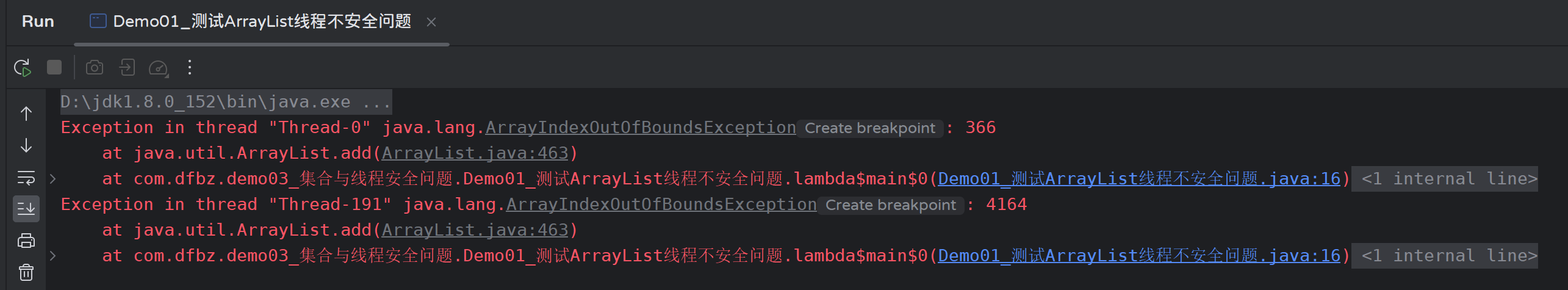 Tips:HashMap同样会出现这个问题,将集合换成Vector或者Stack等线程安全集合可以解决这些问题;或者使用JDK提供的其他线程同步集合也可以解决这些问题;