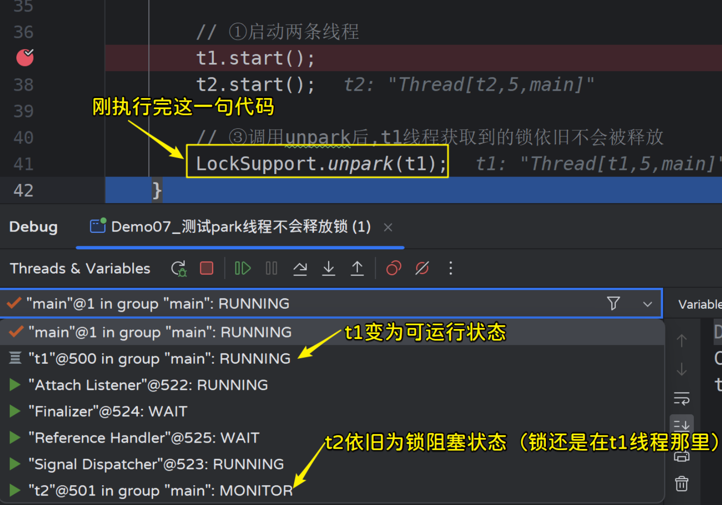 public final native void notify():唤醒在当前锁对象中随机的一条线程public final native void notifyAll():唤醒当前锁对象对应的所有线程(效率低)