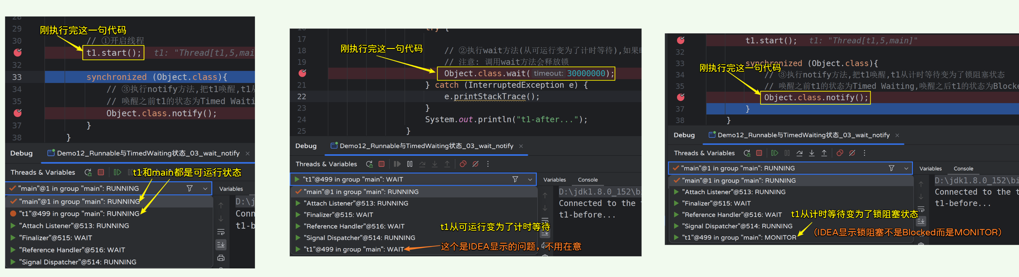 Tips:notify()方法也是锁对象来调用,并不是当前线程对象调用