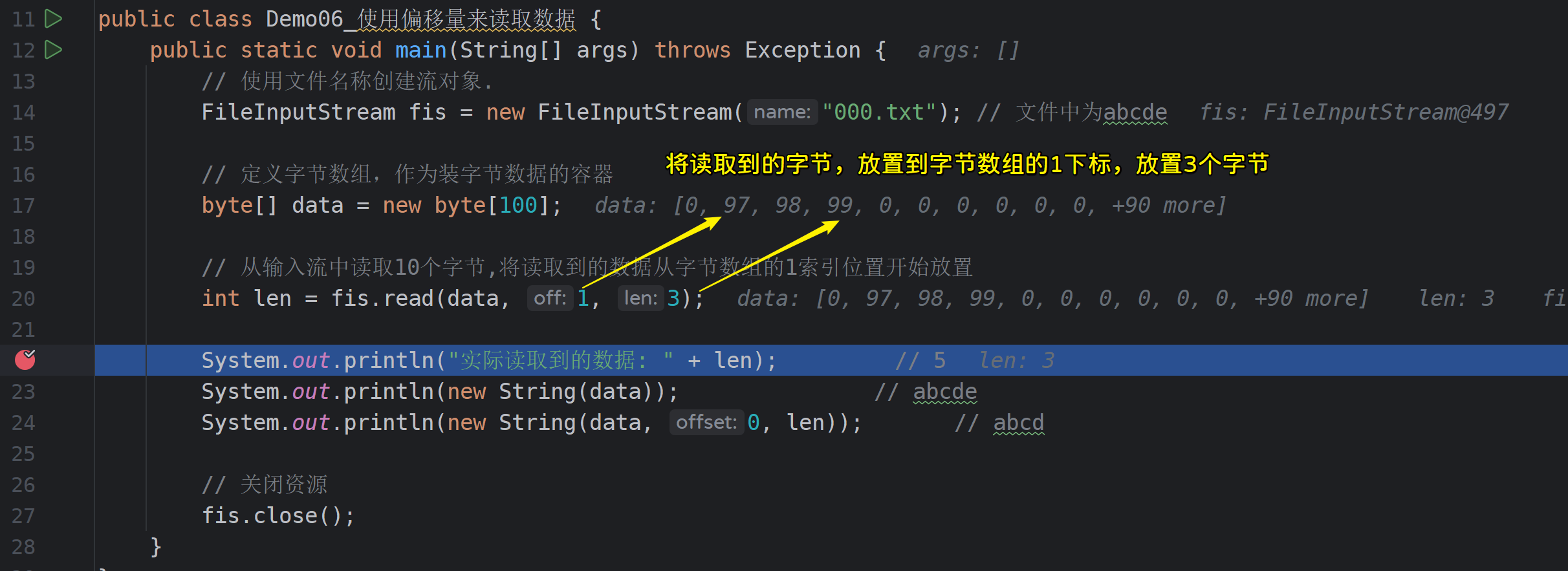write(int b):每次可以写出一个字节数据;write(byte[] b):写出一个字节数组的数据;write(byte[] b, int off, int len):从字节数组中的off位置开始写出,写出len个字节;