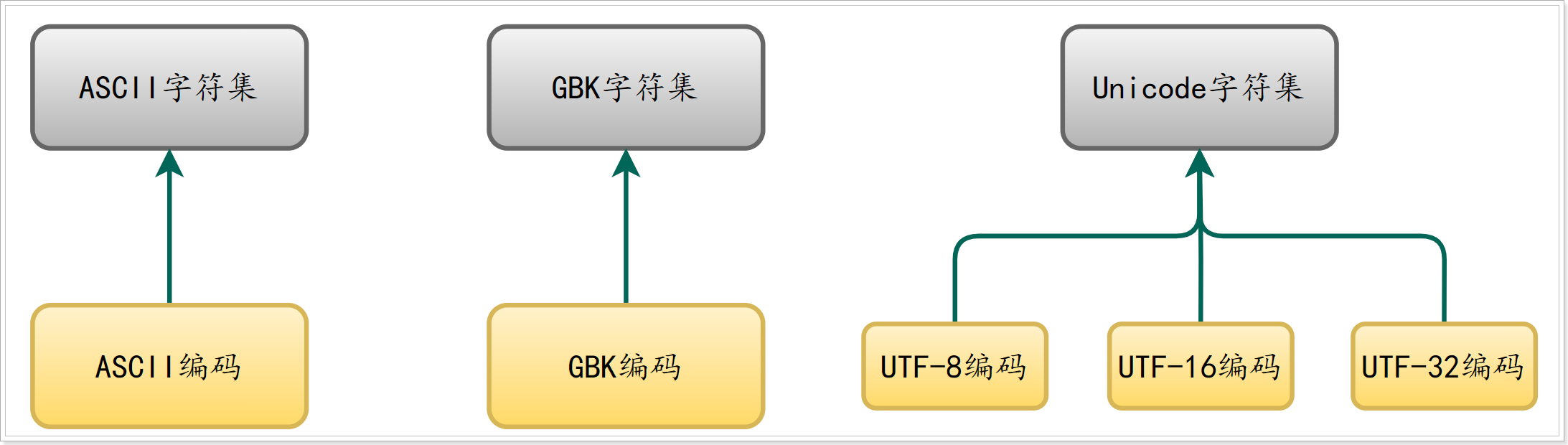 在早期,字符集与编码是一对一的。有很多的字符编码方案,一个字符集只有唯一一个编码实现,两者是一一对应的。比如 GB2312,这种情况,无论你怎么去称呼它们,比如“GB2312编码”,“GB2312字符集”,说来说去其实都是一个东西,可能它本身就没有特意去做什么区分,所以无论怎么说都不会错。