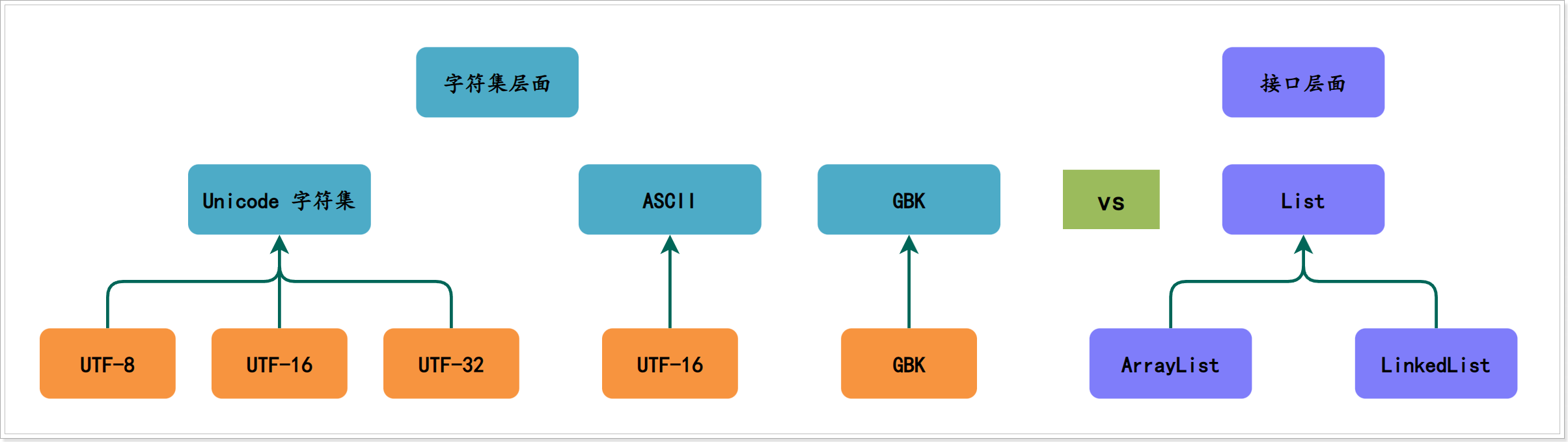但如果觉得它现有的编码方案不太好呢?在不能弄出新的字符集情况下,只能在编码方面做文章了,于是就有了多个实现,这样一来传统的一一对应关系就打破了。