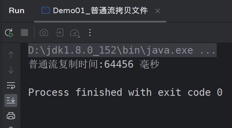 我们分别使用普通流和缓冲流对一个大小为10.4MB的文件进行拷贝,查看两种方案所花费的时间;