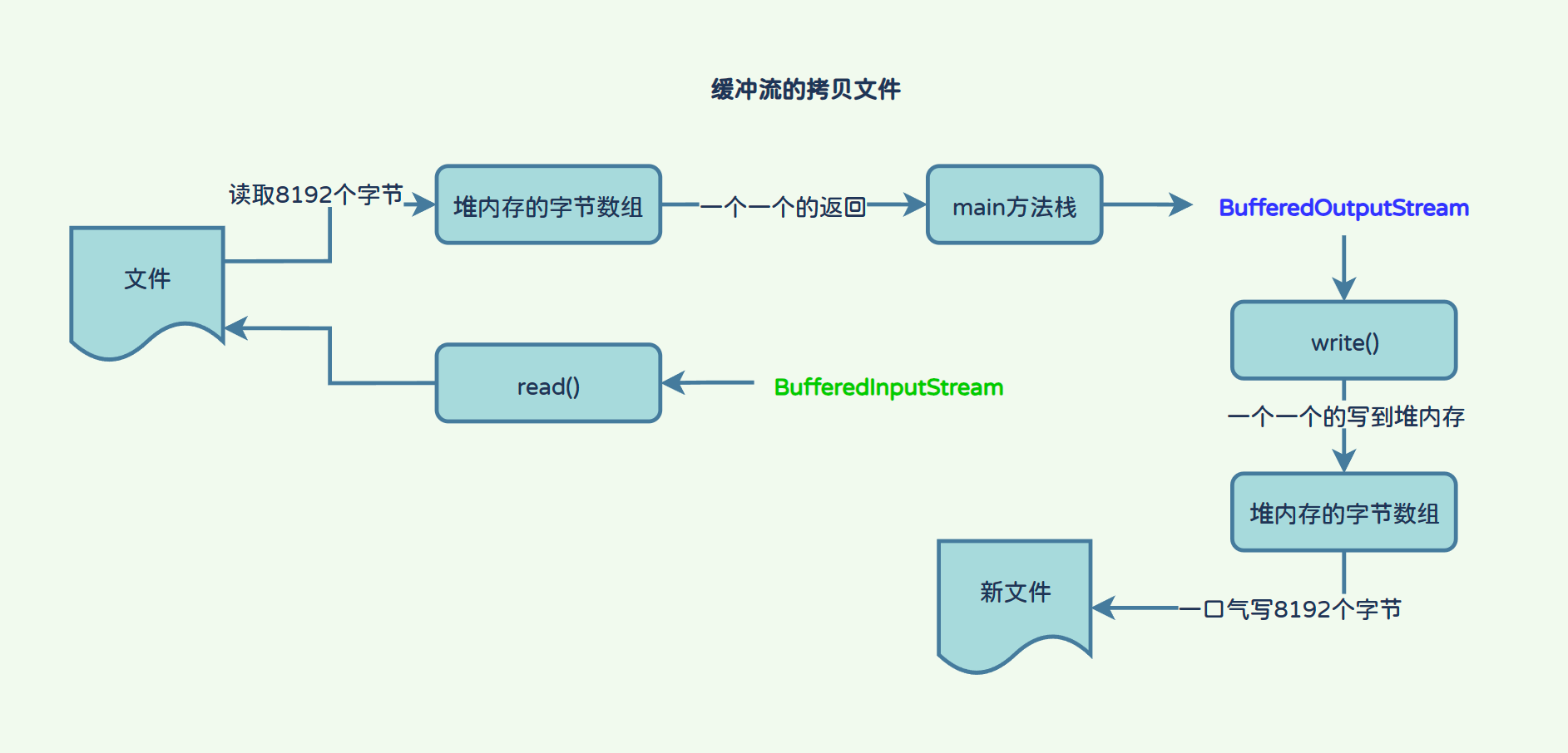 缓冲流在读取/写出数据时,内置有一个默认大小为8192字节/字符的缓冲区数组,当发生一次IO时读满8192个字节再进行操作,从而提高读写的效率。