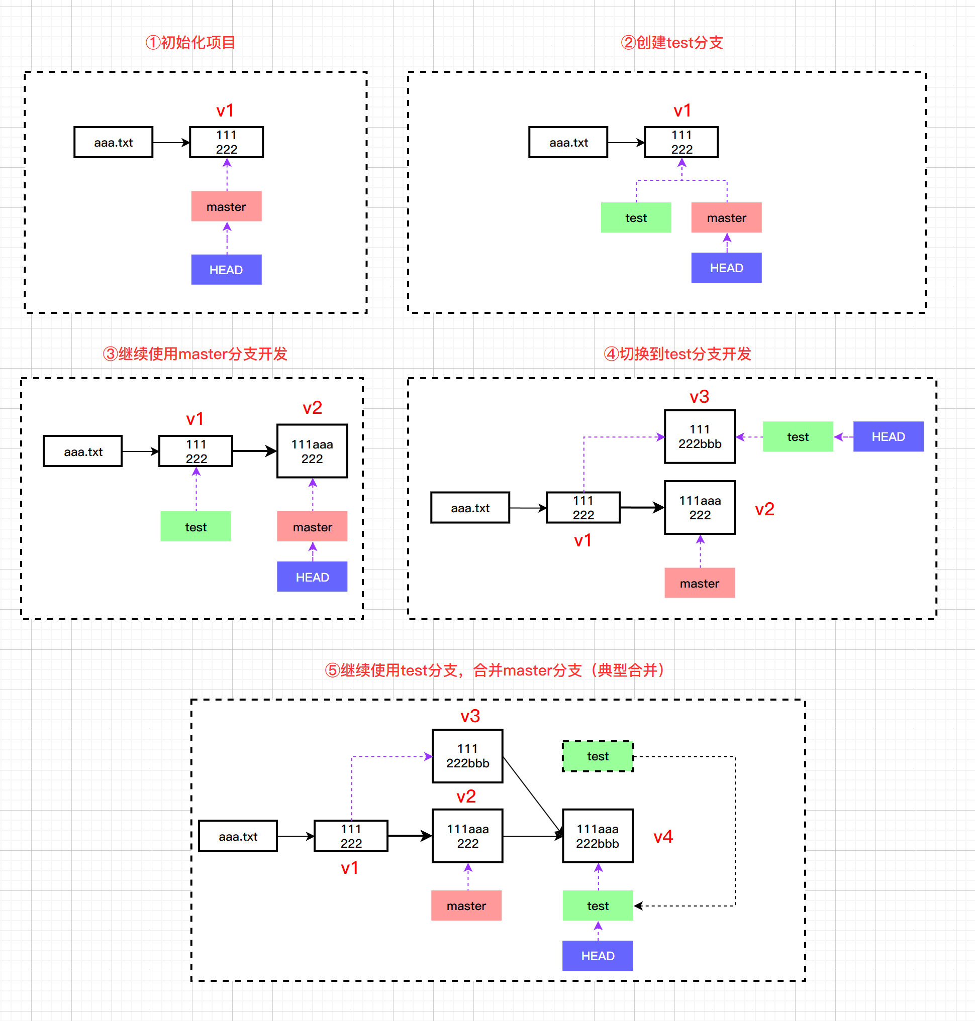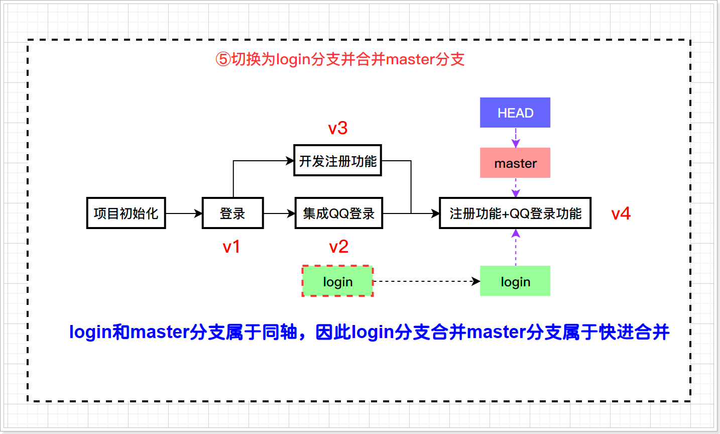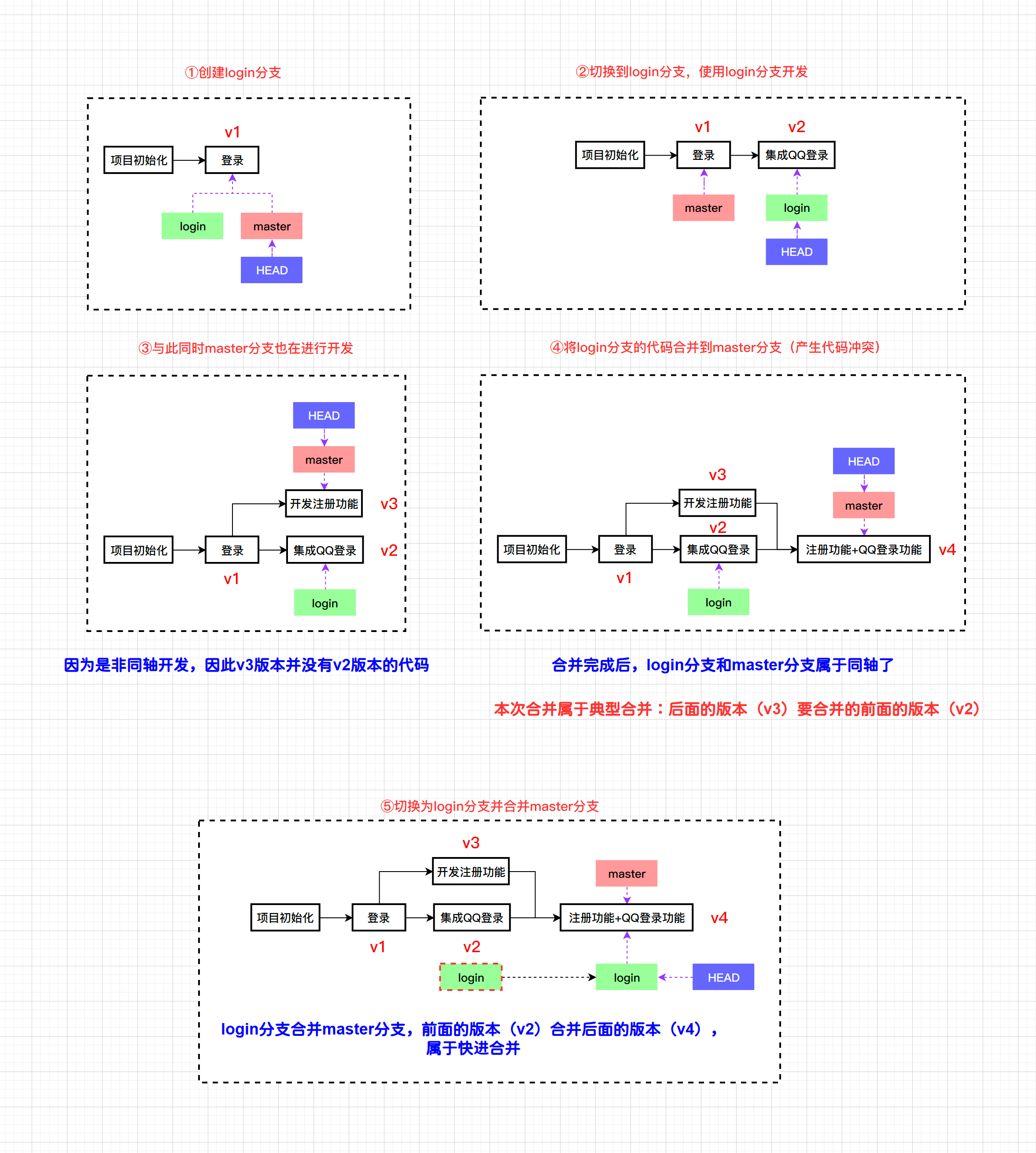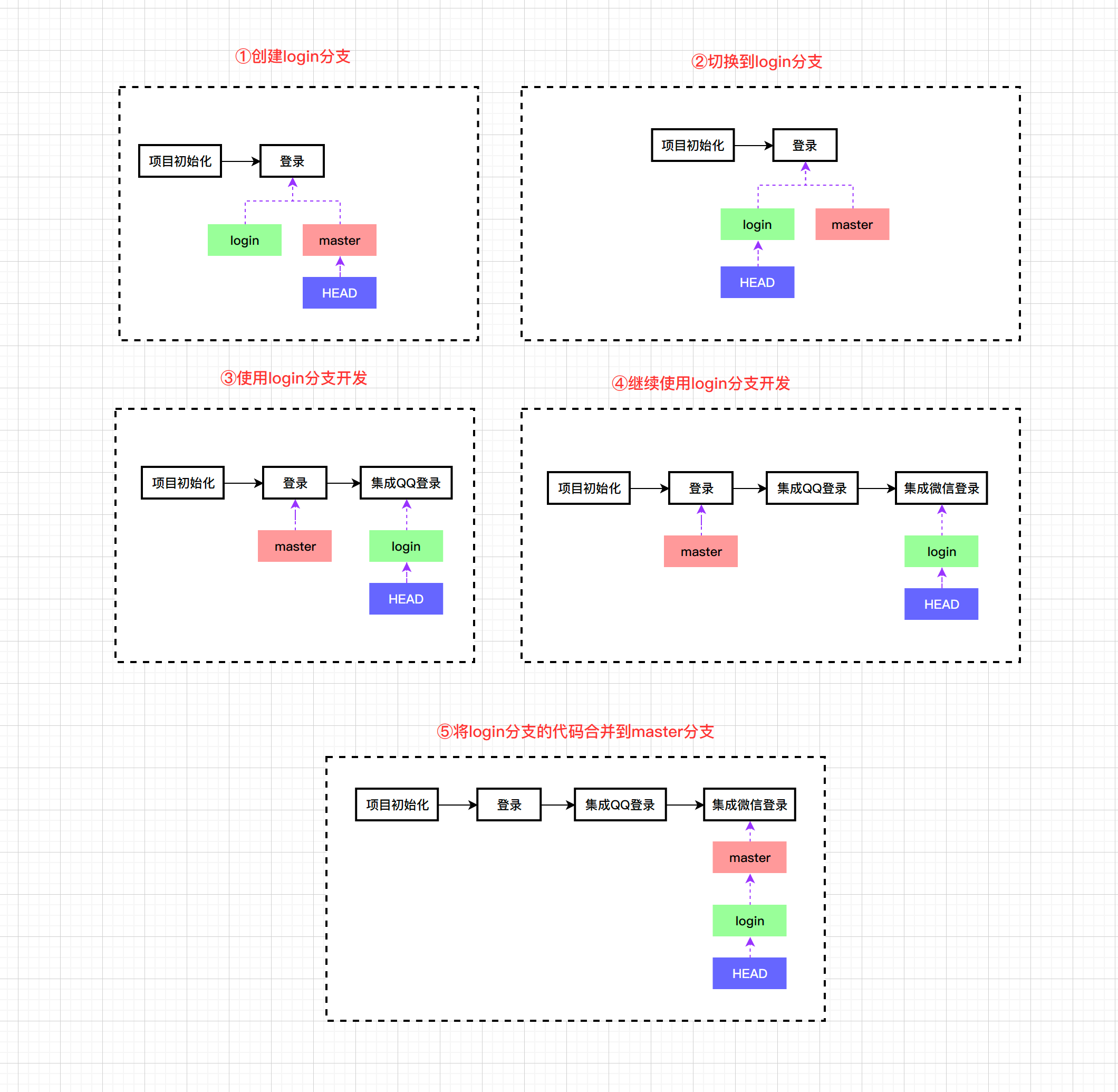 在Git中使用分支的主要目的是为了==合并分支==,基于分支来开发项目并不会影响主线开发,当其他分支的代码确认无误需要集成到主线分支(Master分支)时,我们需要进行分支的合并即可,即将主线分支合并到其他分支中,这样一个完整的功能就集成到主线代码中了;