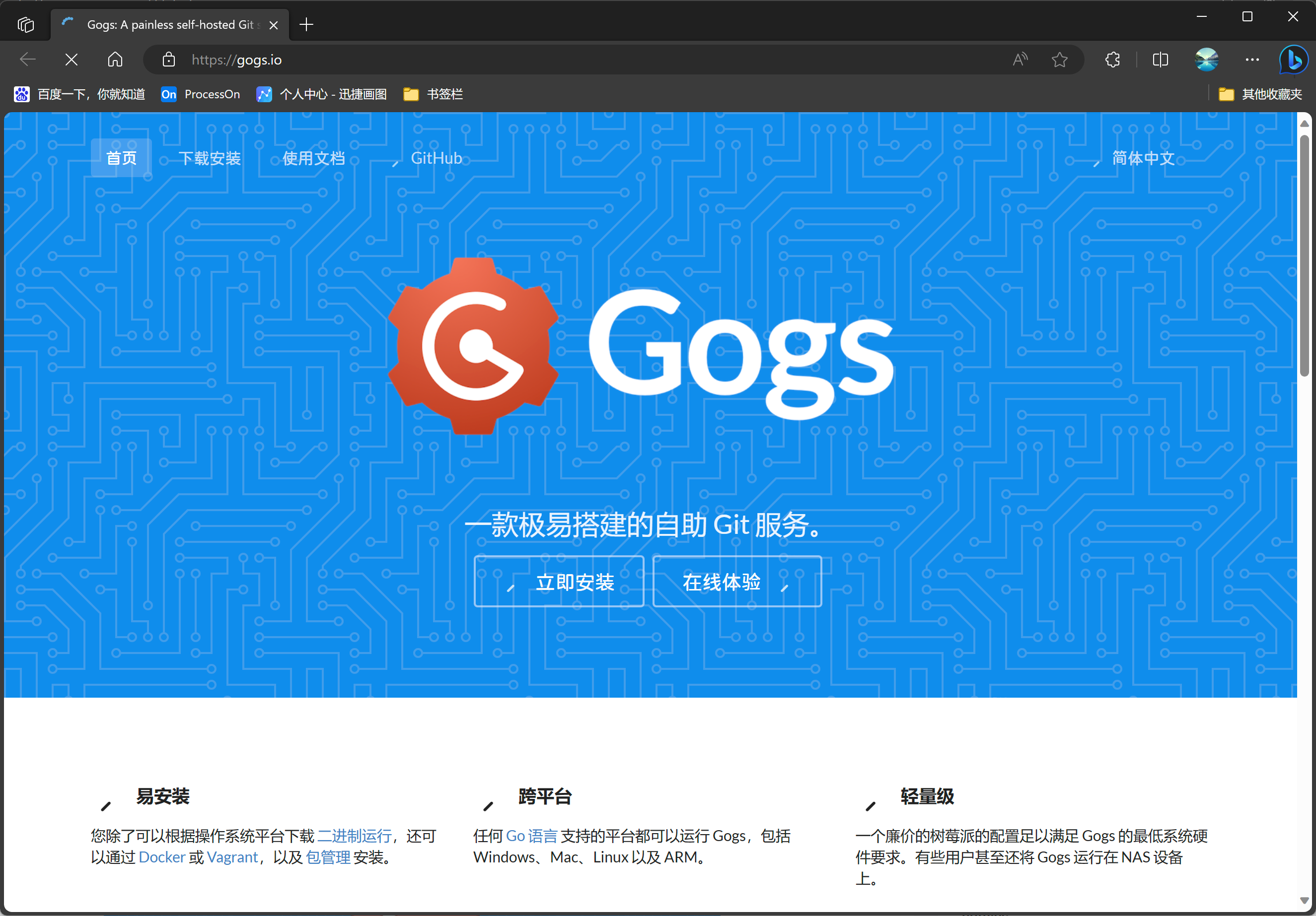- gogs:Gogs 是一款极易搭建的自助 Git 服务。Gogs 的目标是打造一个最简单、最快速和最轻松的方式搭建自助 Git 服务。