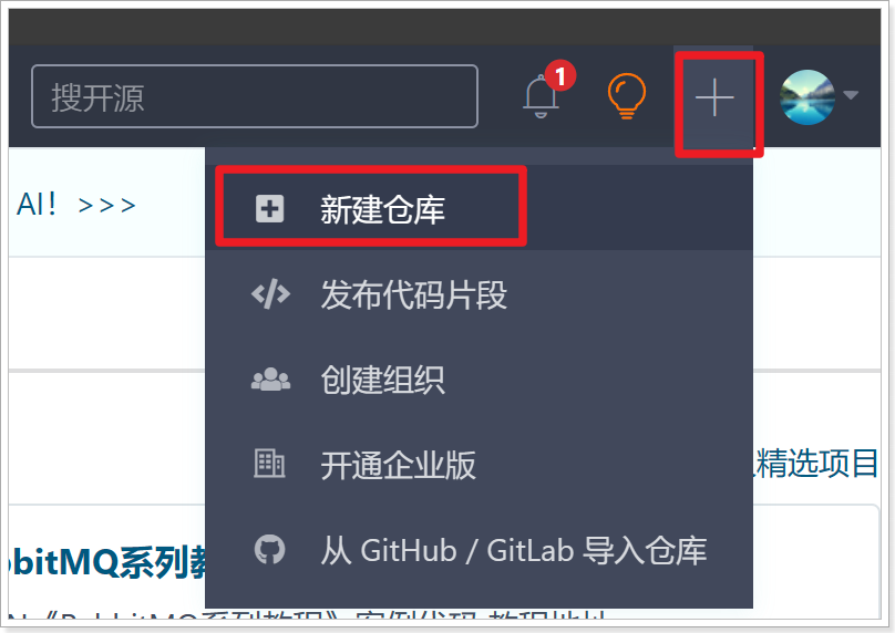 - 1)新建远程仓库: