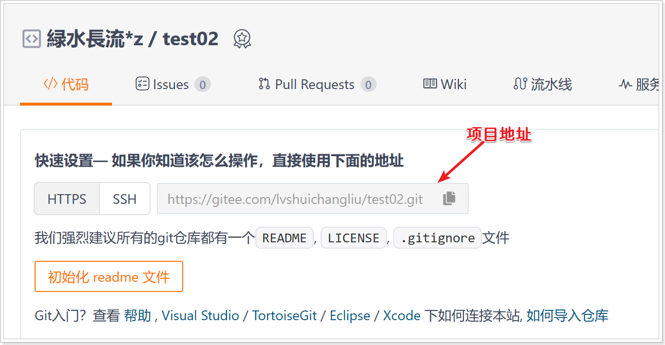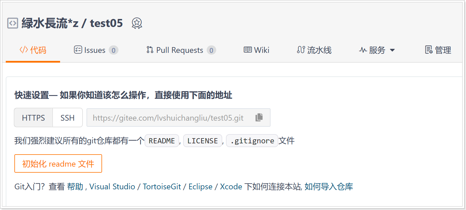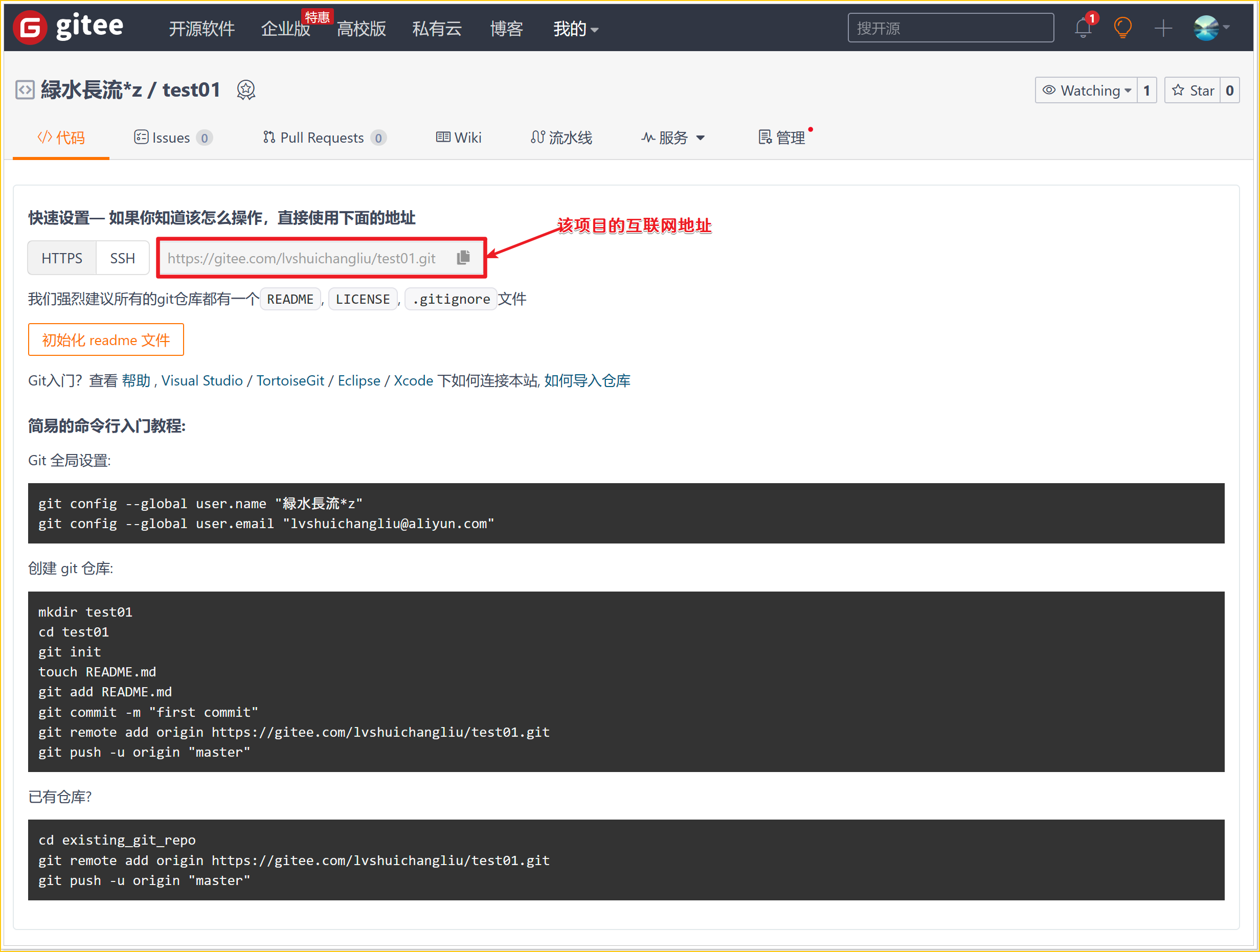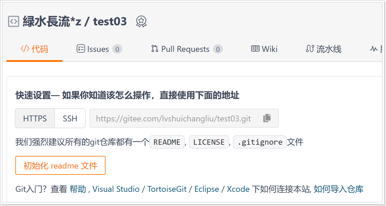 $ git remote add test01 https://gitee.com/lvshuichangliu/test01.git