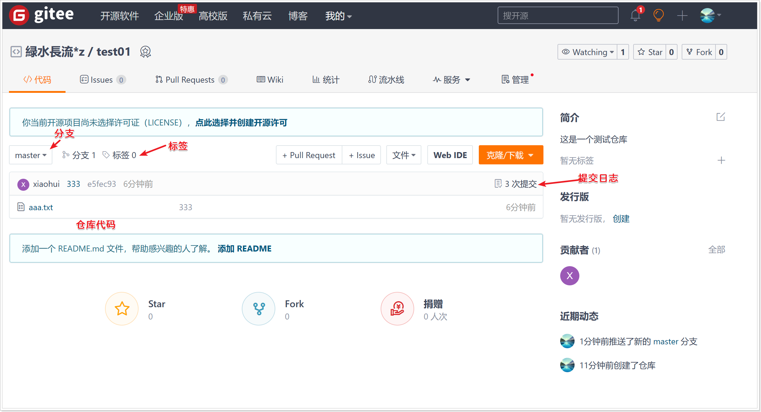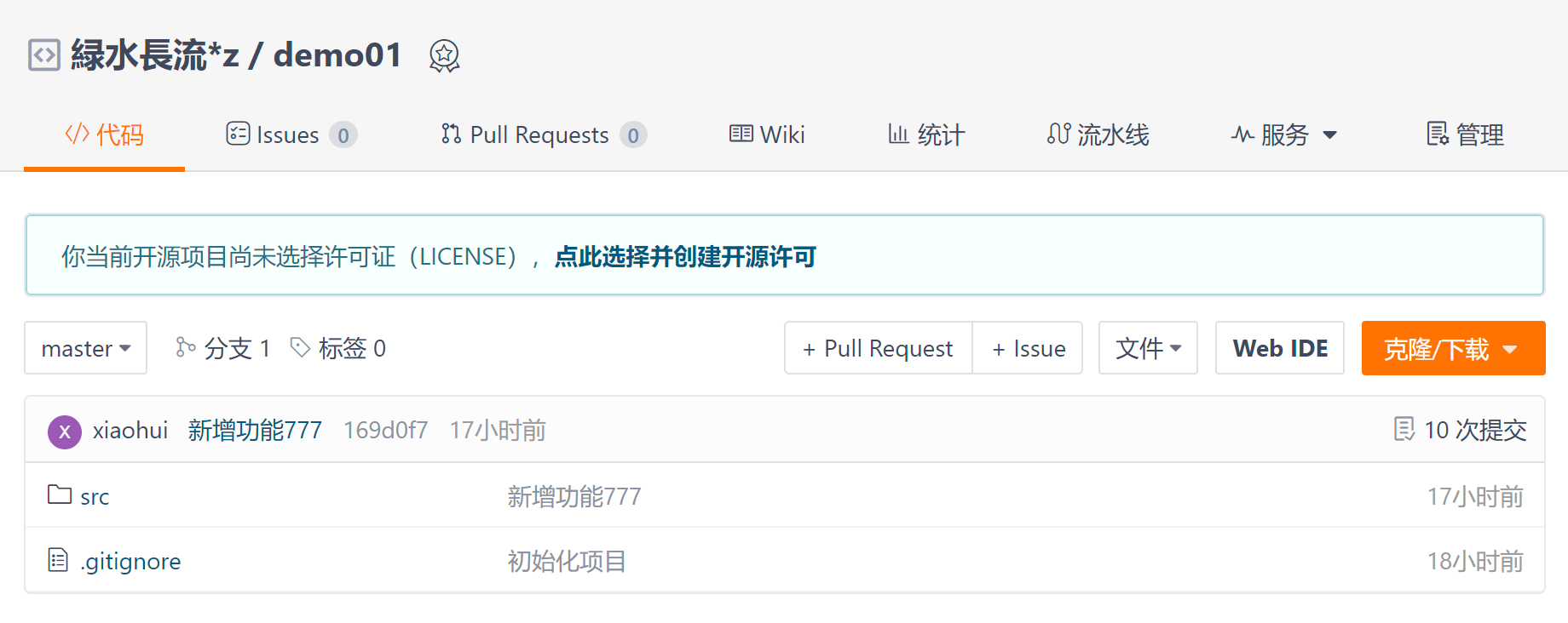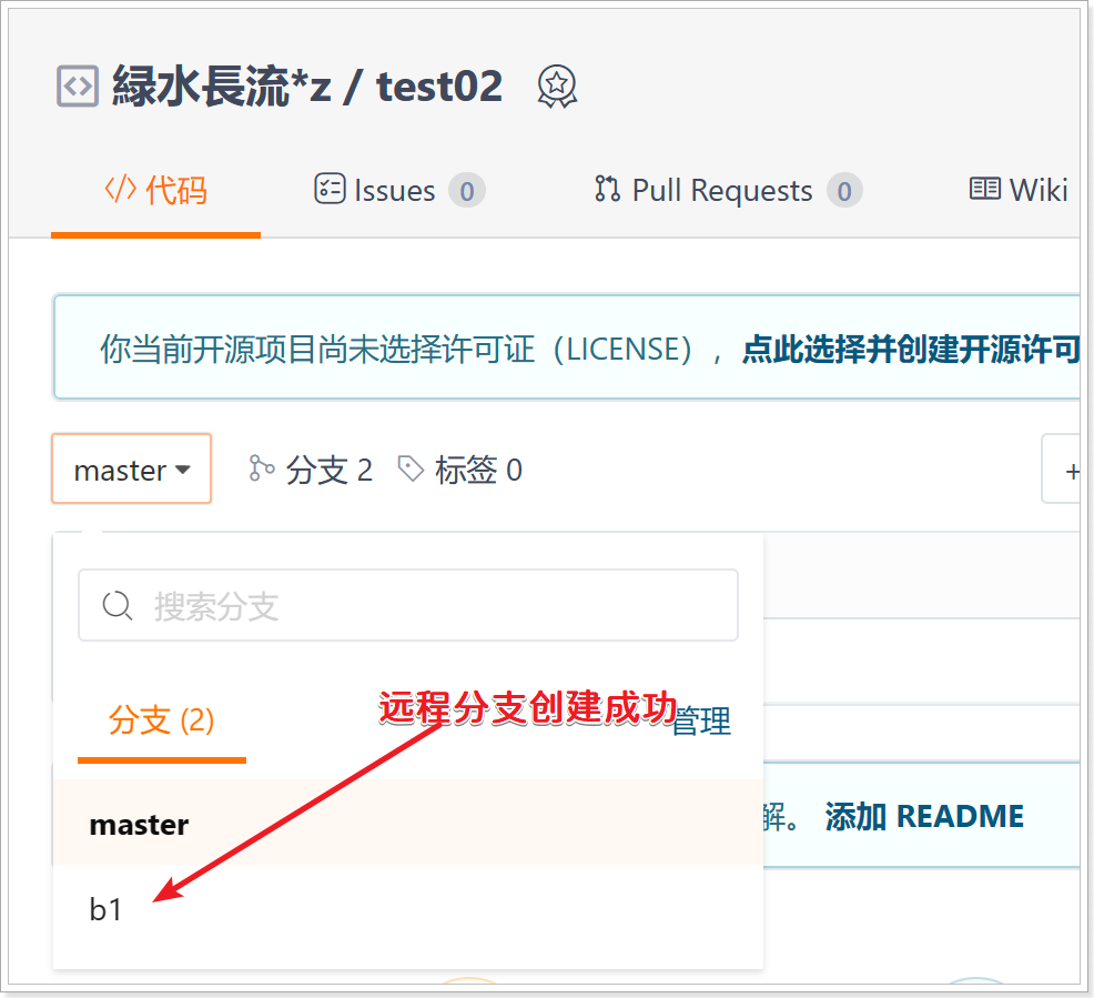 $ git remote add test01 https://gitee.com/lvshuichangliu/test01.git