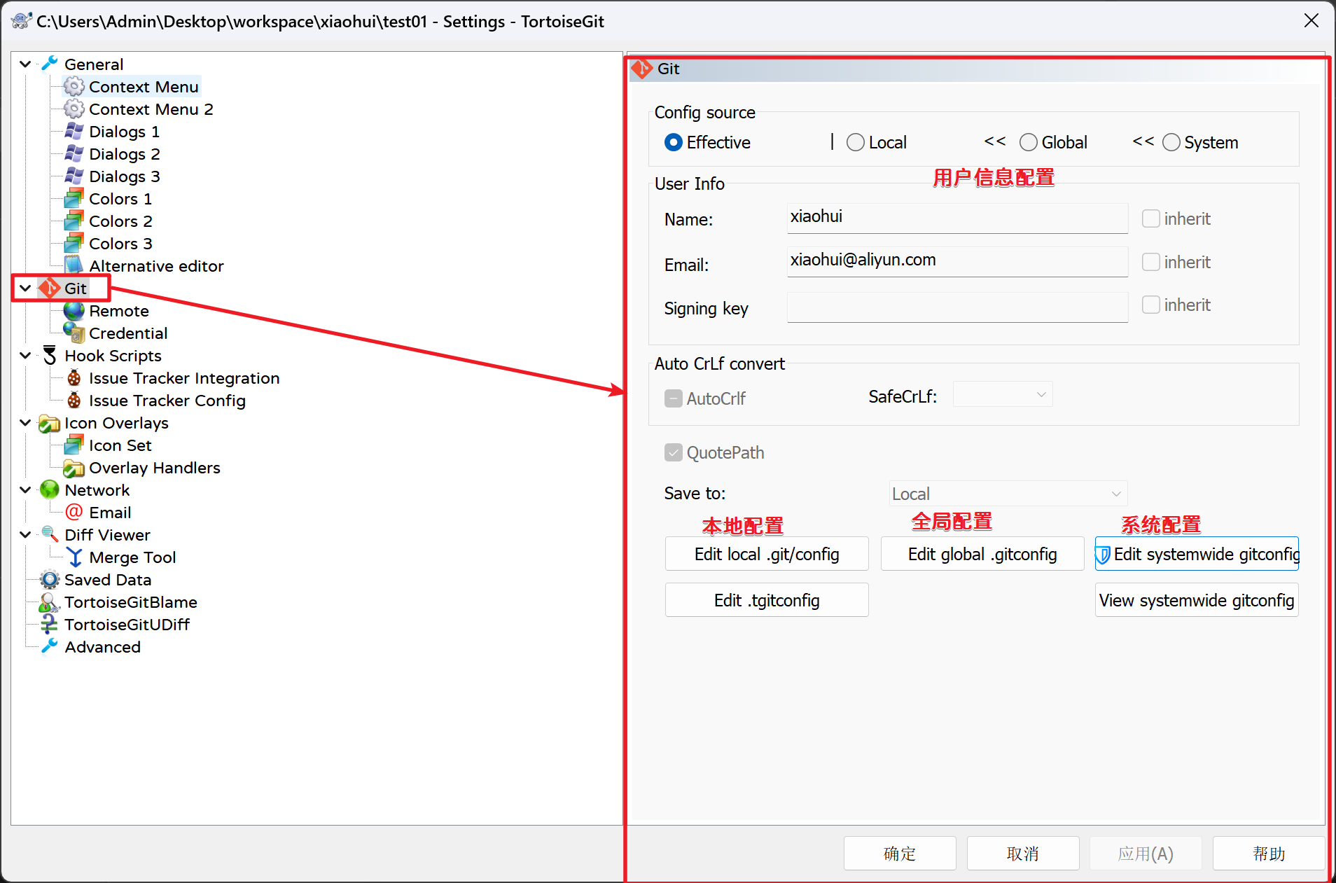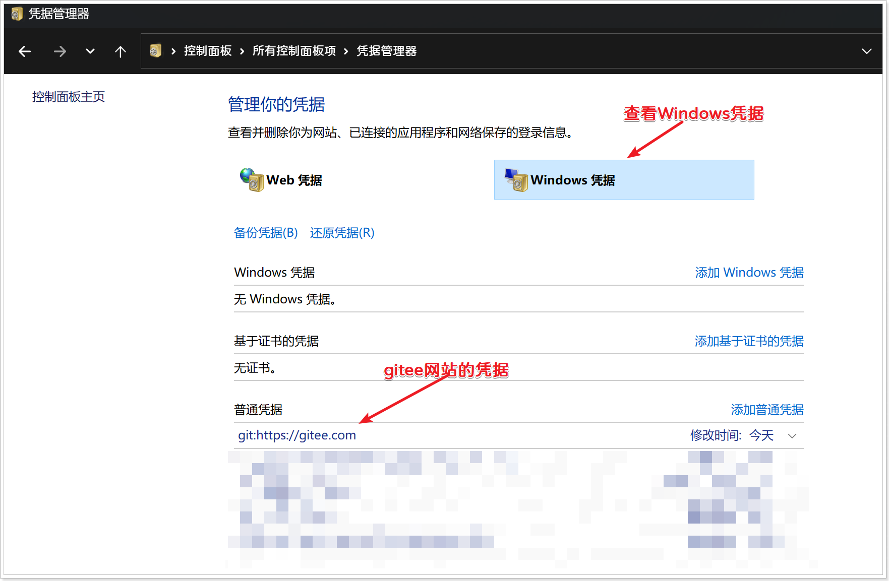 有的人的电脑在推送之后,windows凭据中并不会保存用户信息,再次推送仍然需要填写用户信息,我们可以通过配置Git的方式来强制保存凭证:
