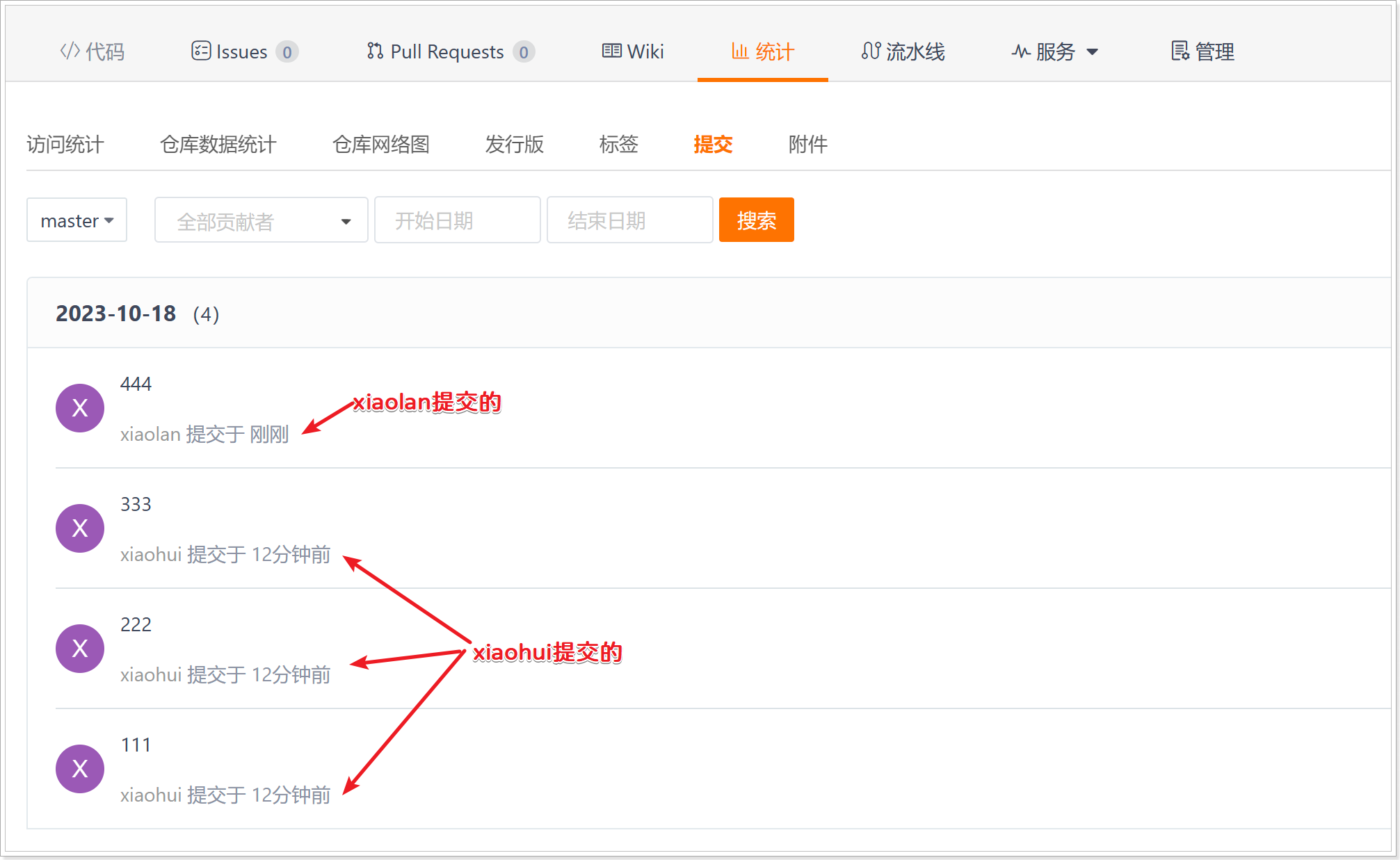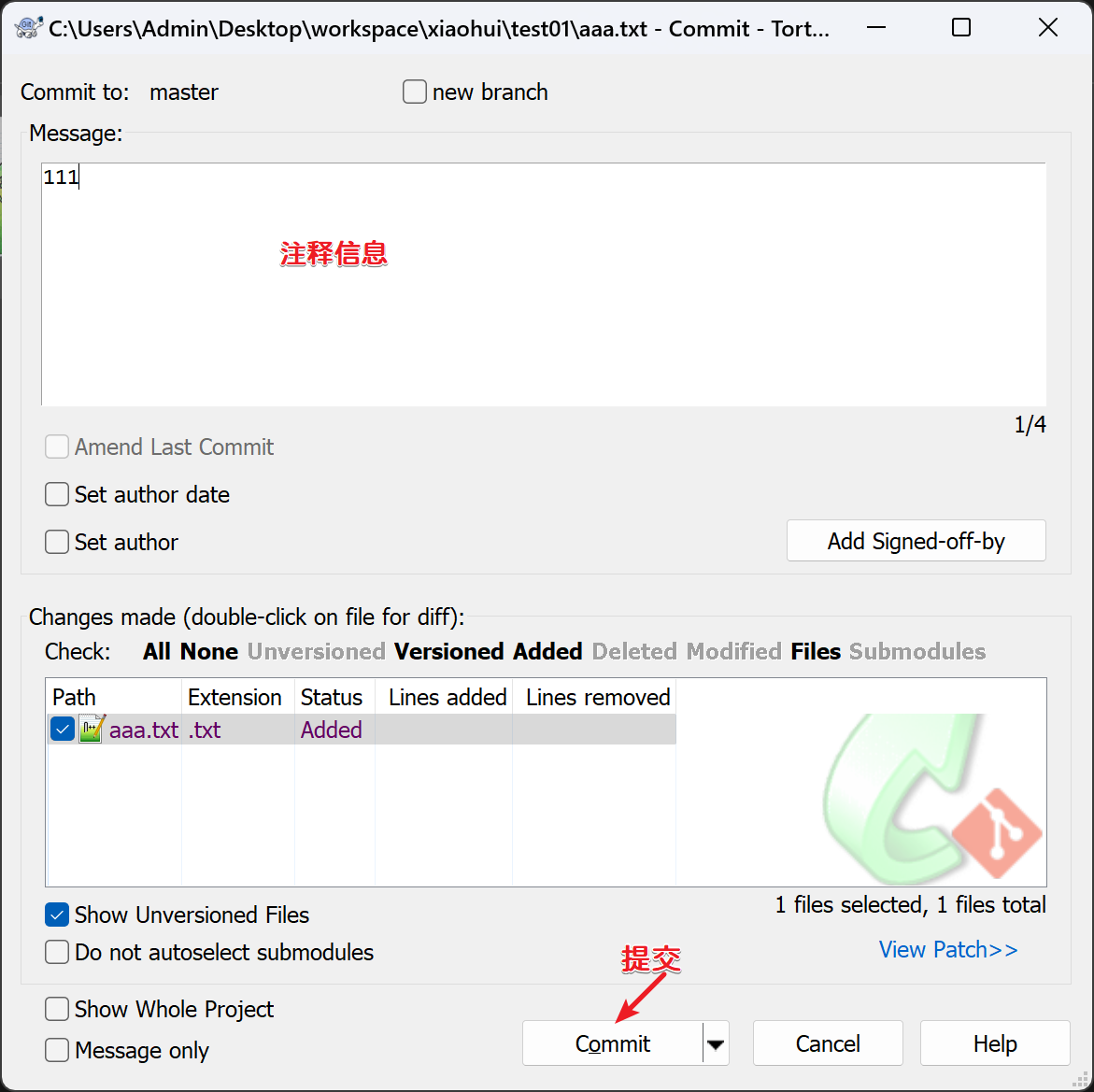 点击保存后,自动产生了一条提交记录,提交日志是默认的: