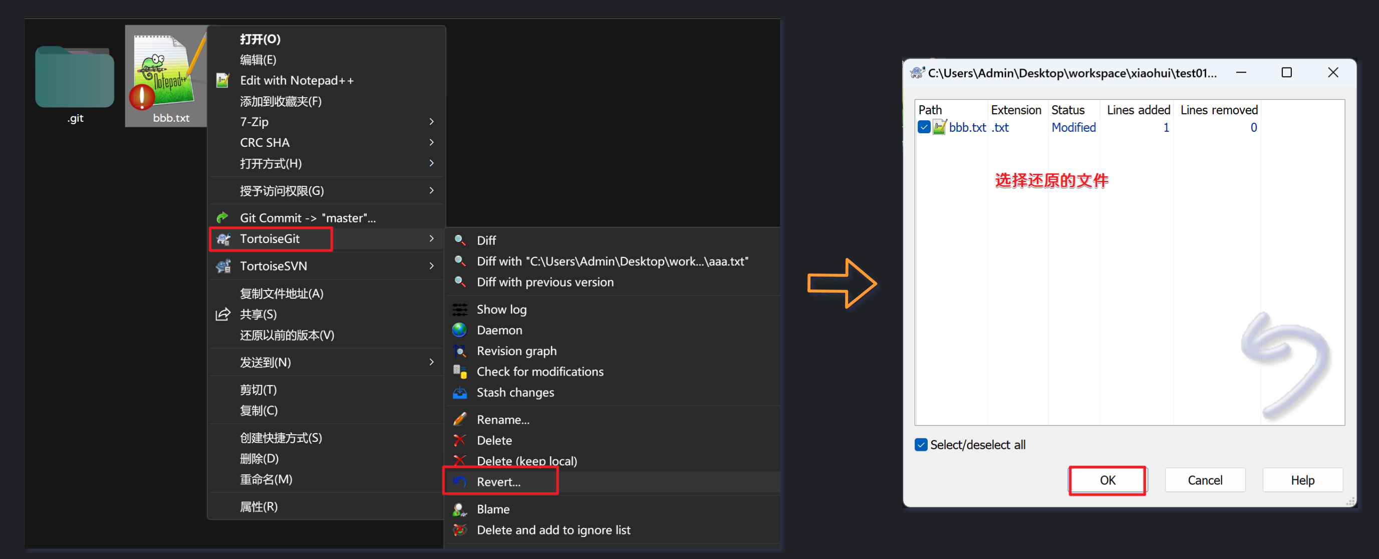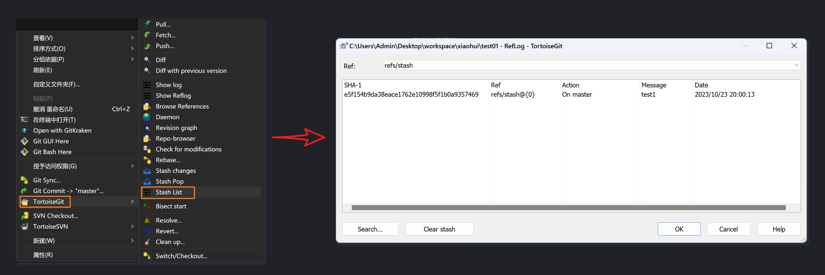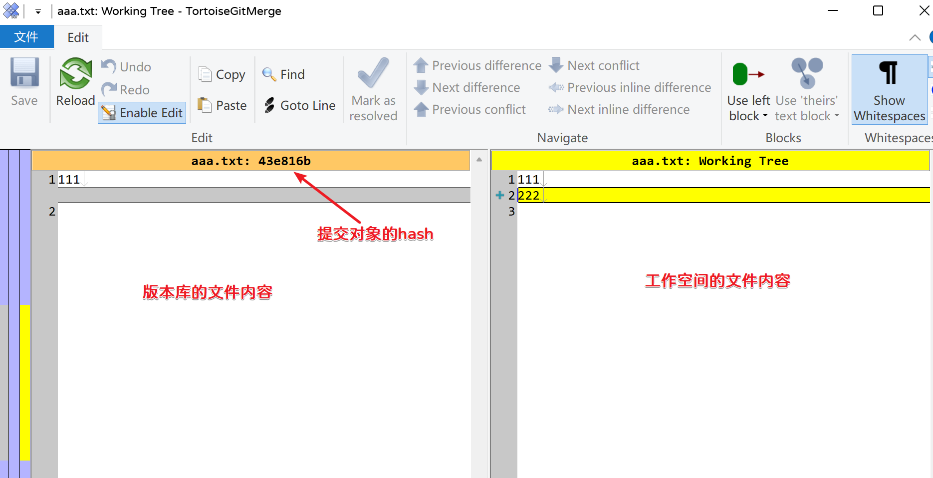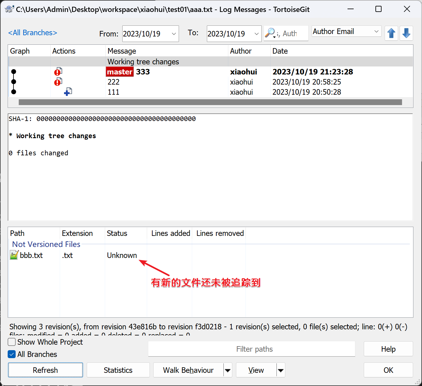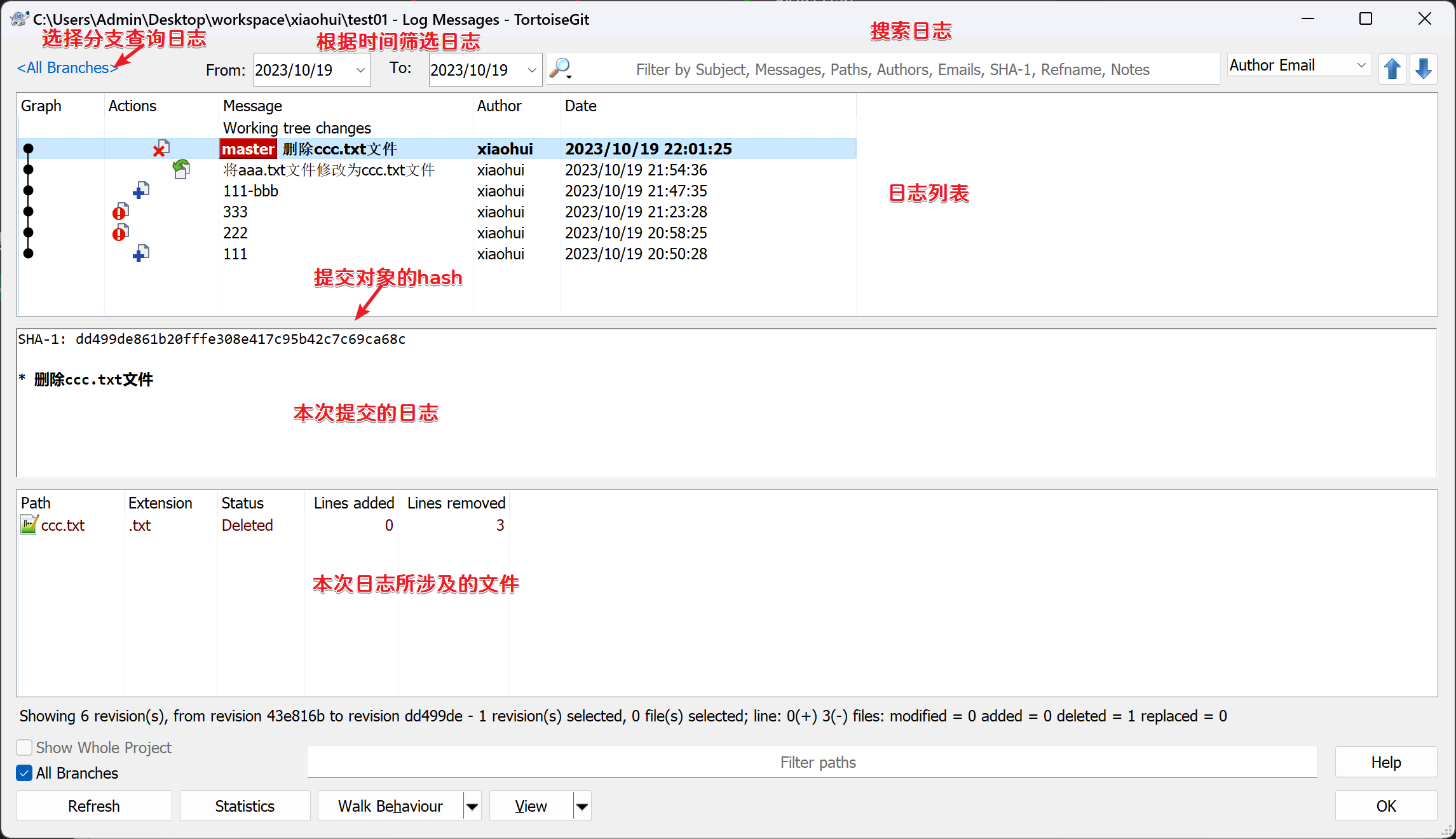 查看Git日志和工作空间: