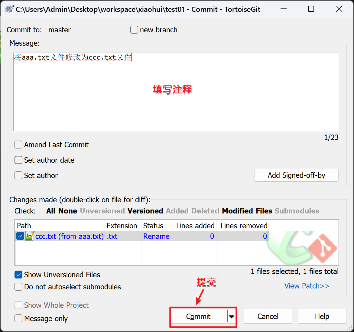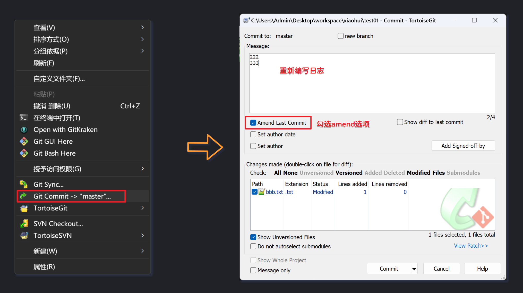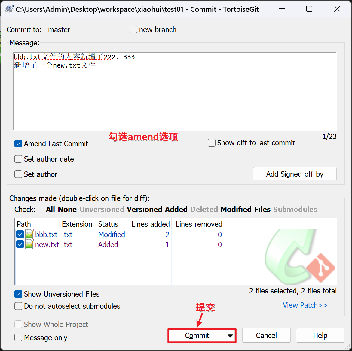 我们可以使用amend来修改提交日志: