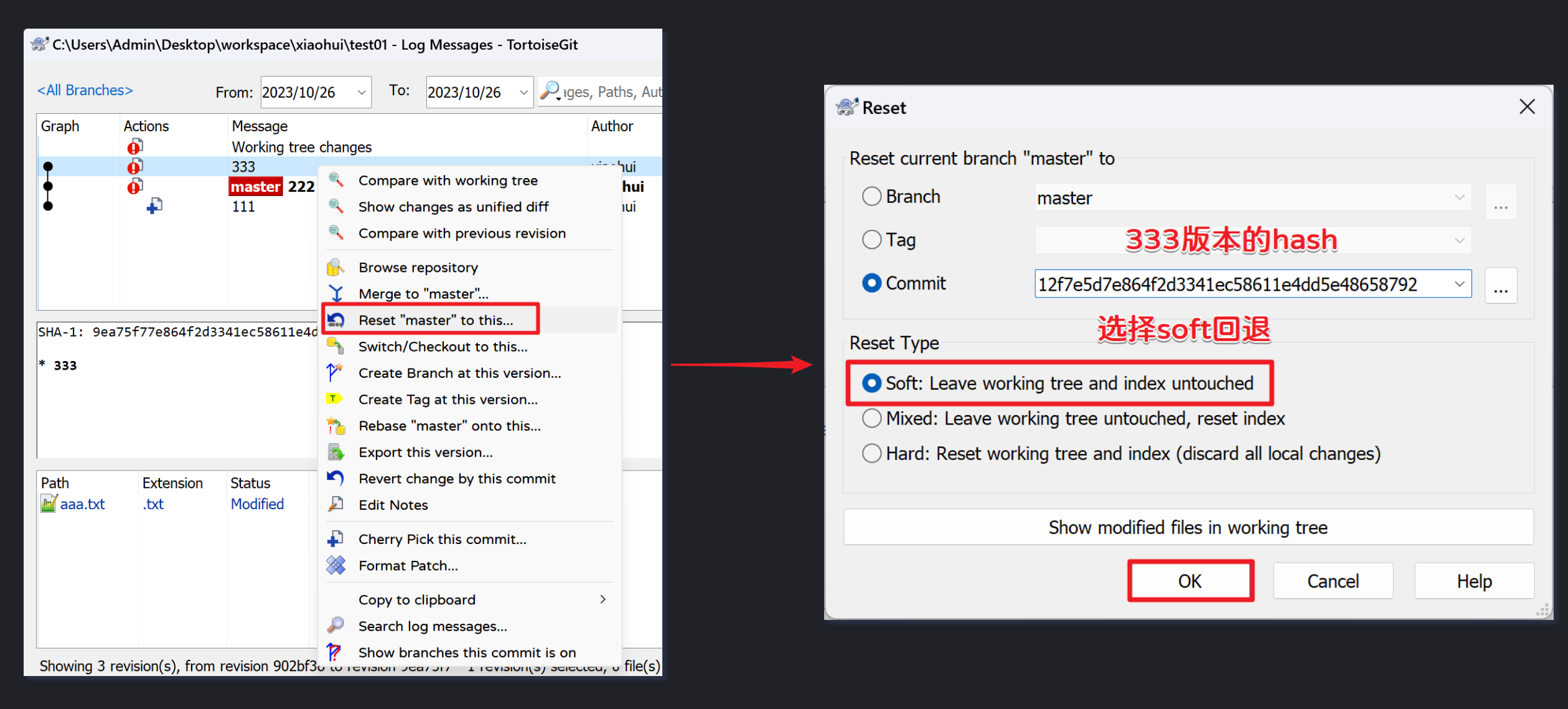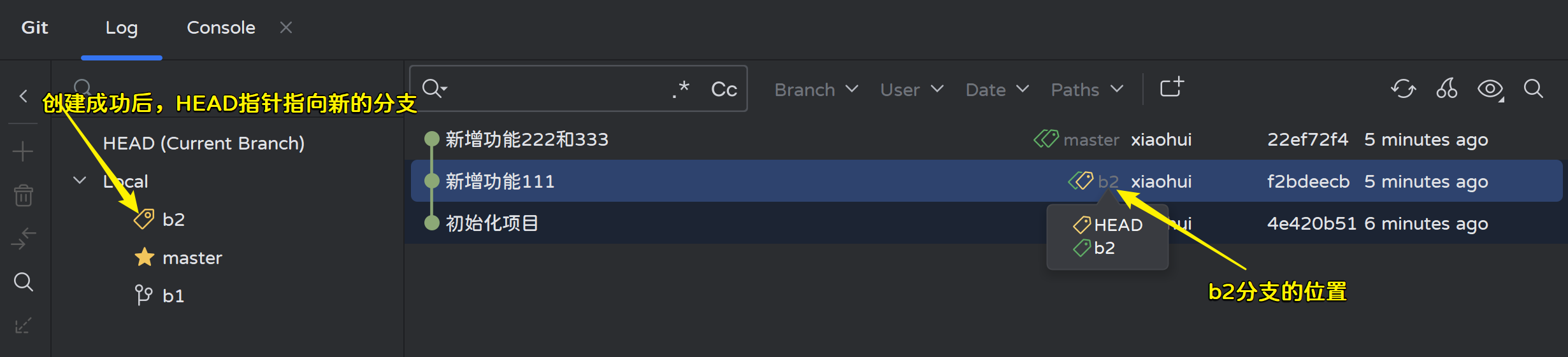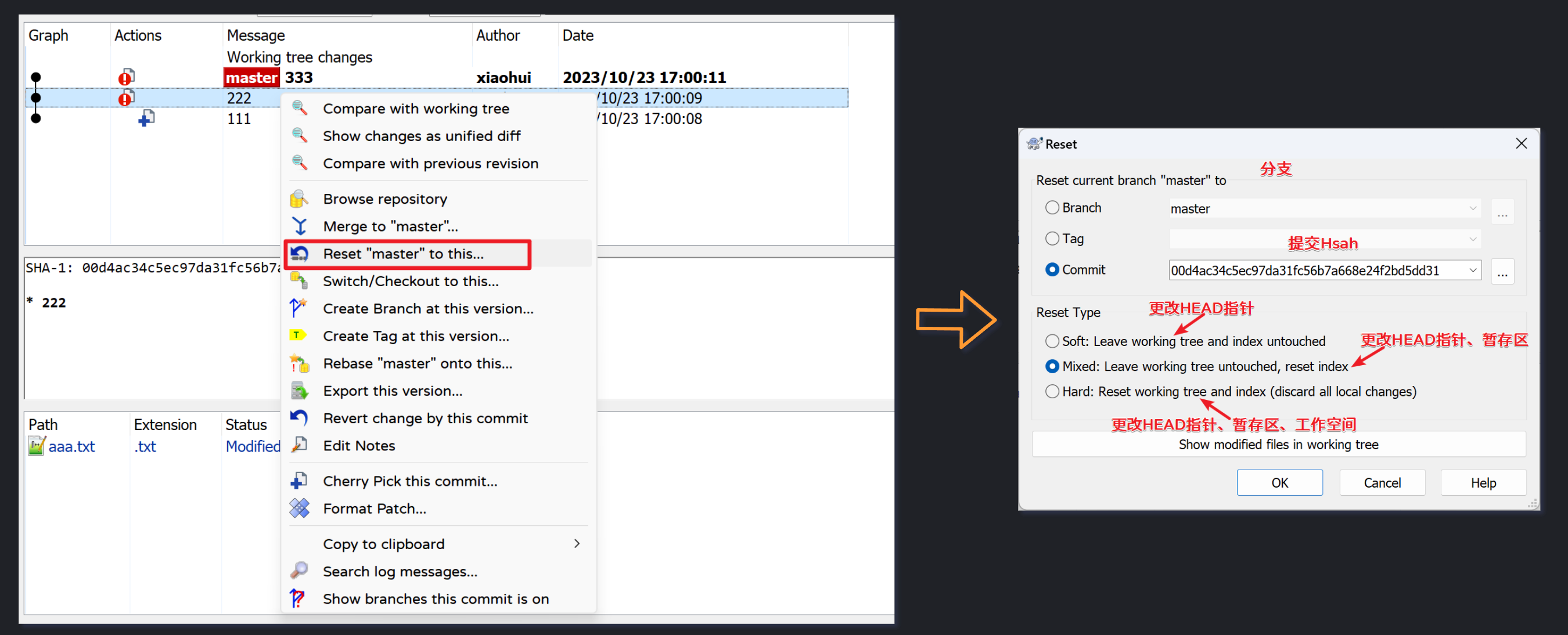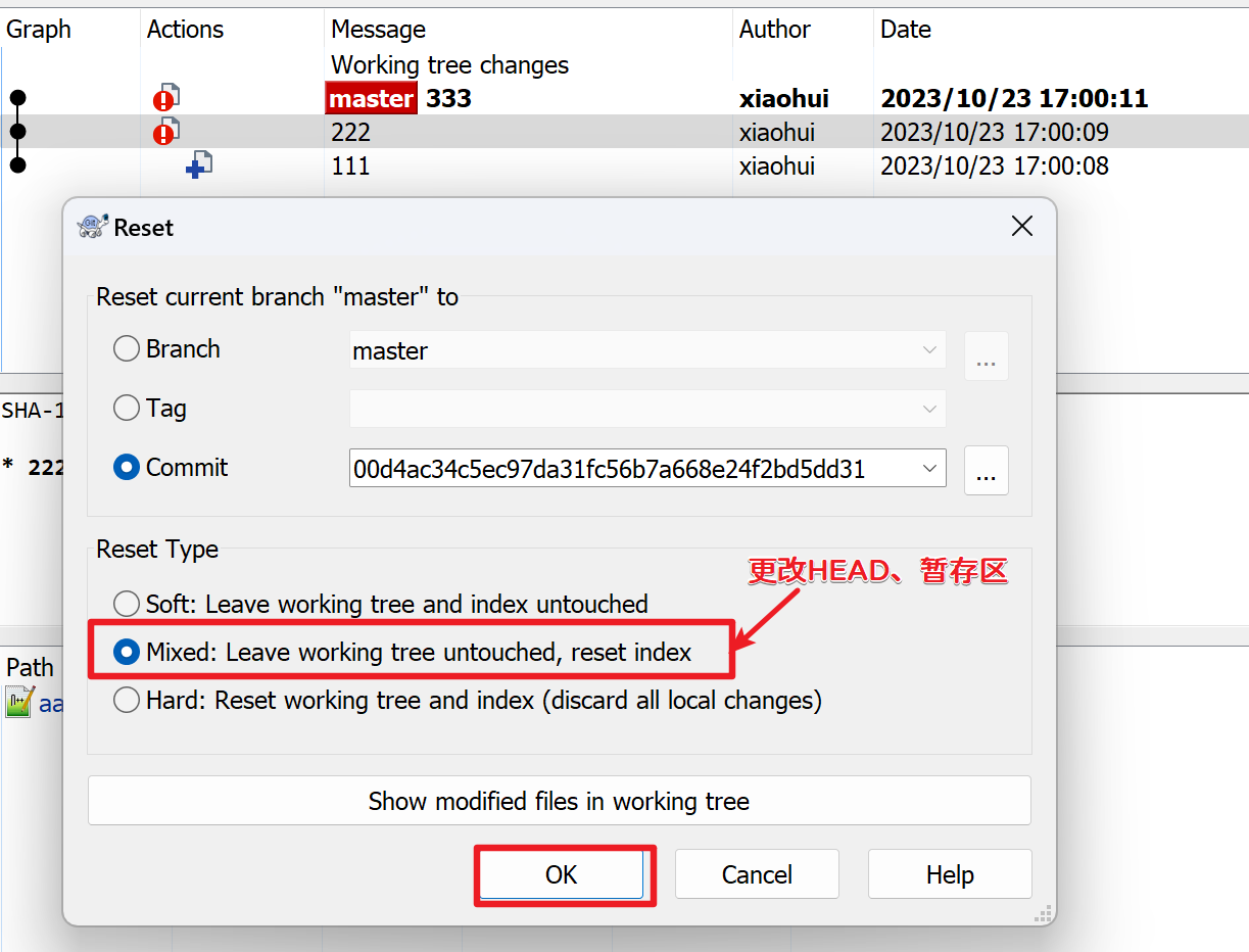 Adminstrator@LAPTOP-OC90J78H MINGW64 ~/Desktop/workspace/xiaohui/Project (master) # HEAD指针移动了