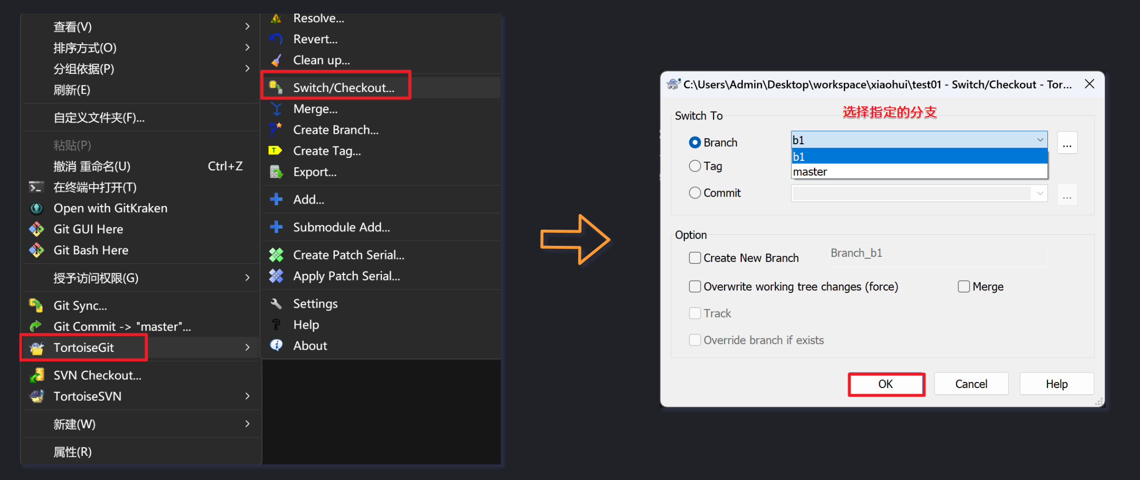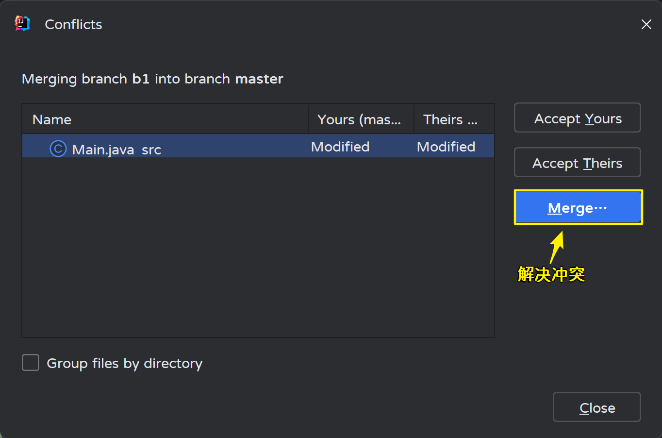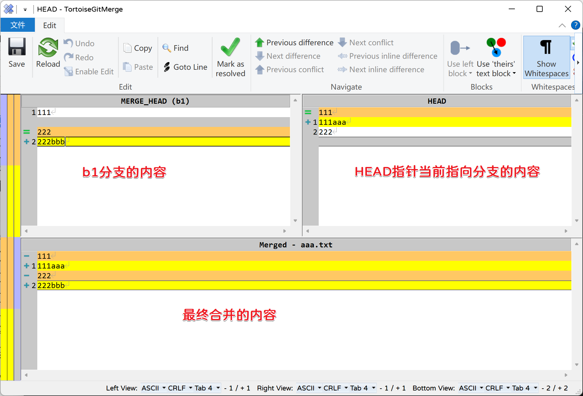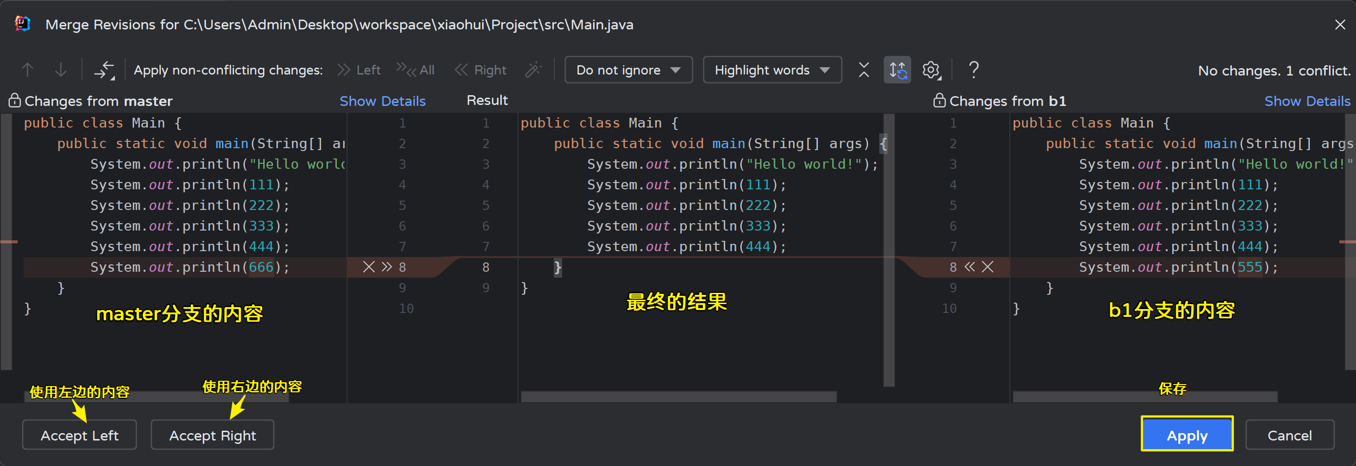 使用master分支合并b1分支的内容: