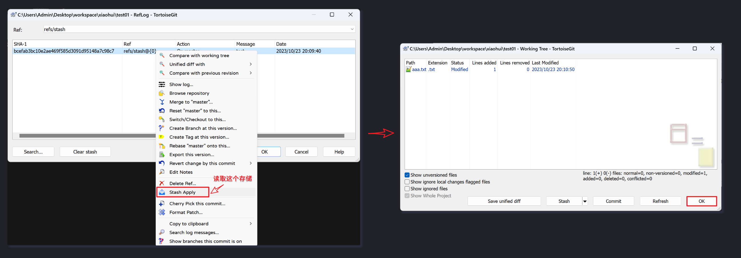 Adminstrator@LAPTOP-OC90J78H MINGW64 ~/Desktop/workspace/xiaohui/Project (master) # 暂存区变化了