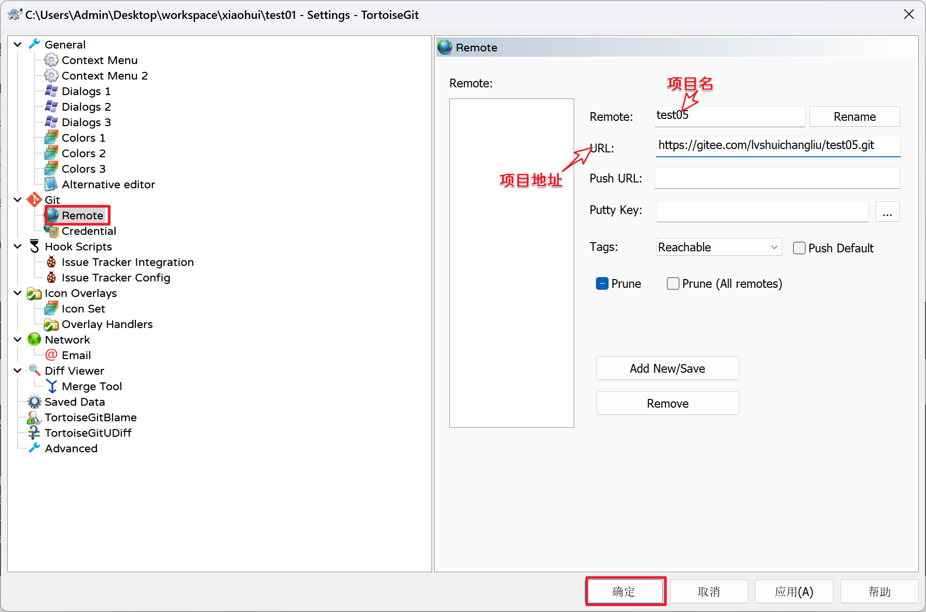 填写完毕用户信息后,我们的信息被记录到Windows凭据中,查看推送就不需要再次添加用户名和密码了