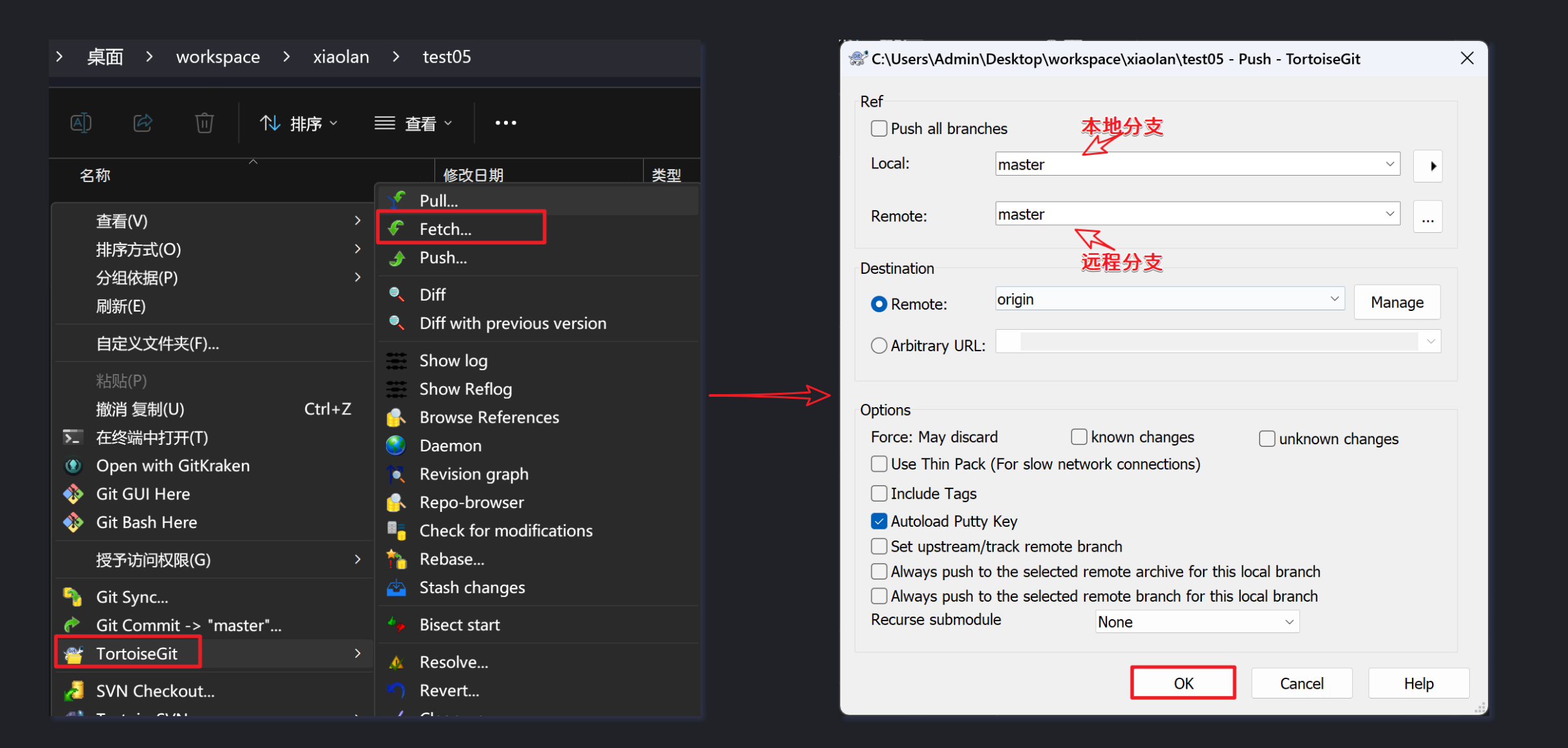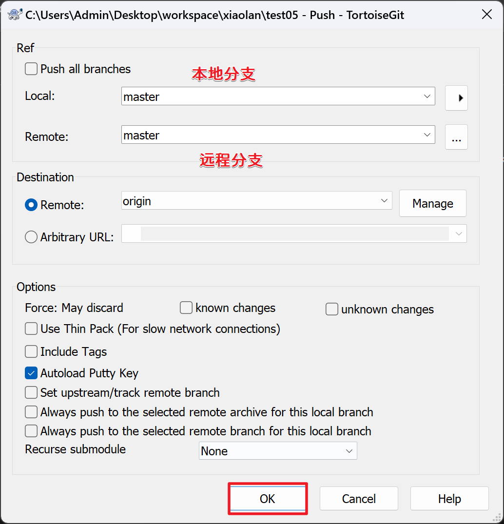 - 2)推送到远程仓库: